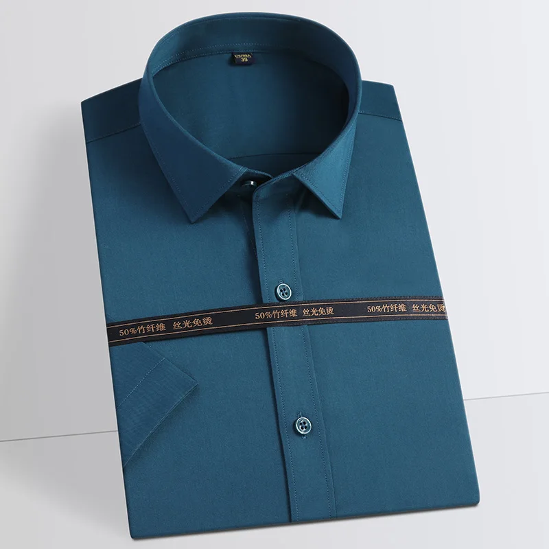 Мужская классическая рубашка из бамбукового волокна, Классическая формальная рубашка без карманов, формальная, деловая, офисная, простая в уходе
