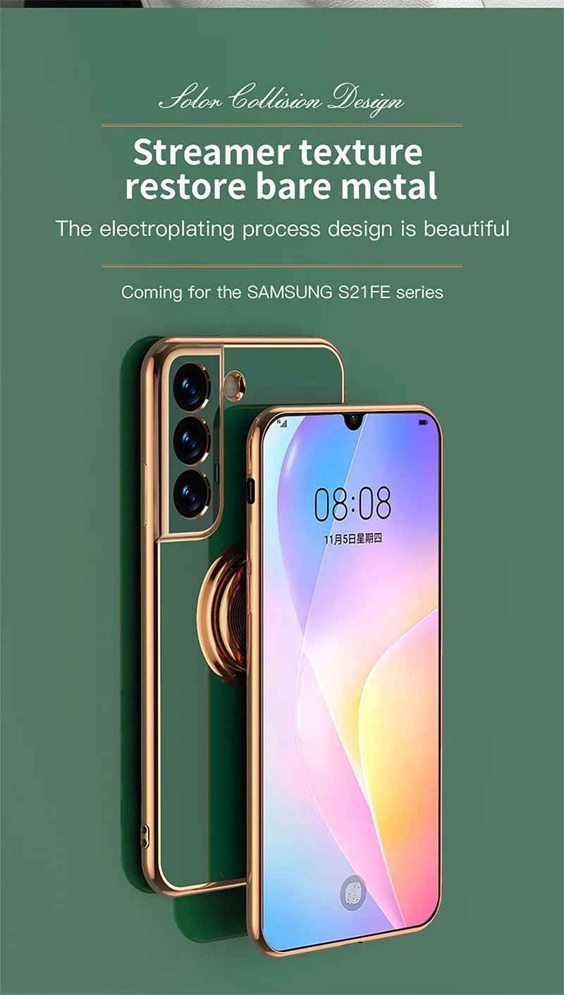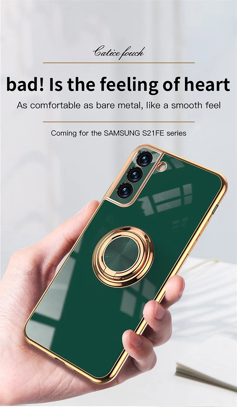 Автомобильный Магнитный чехол-подставка с кольцом для Samsung Galaxy S 21 20 S21 S20 FE Note 10 20 Plus, Ультратонкий Мягкий бампер с покрытием, противоударный чехол