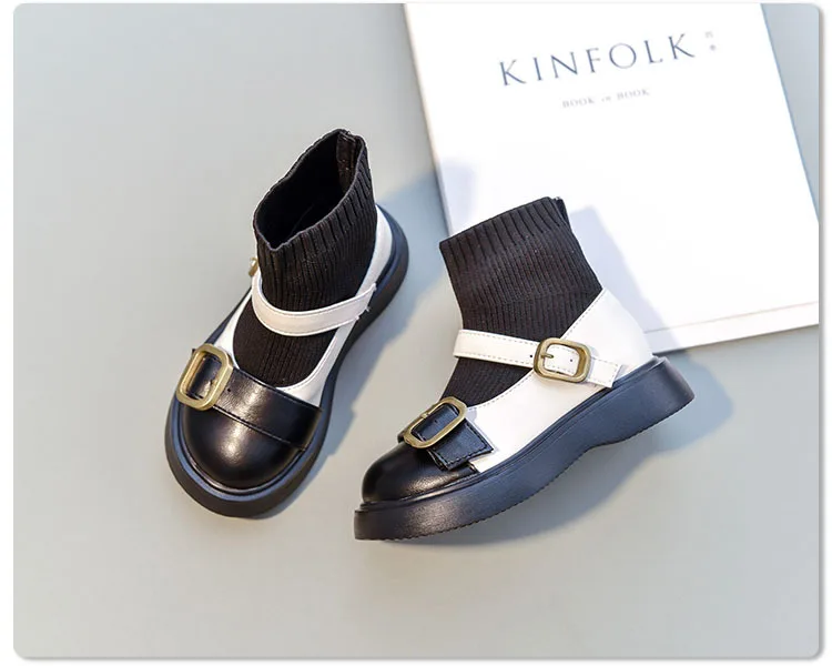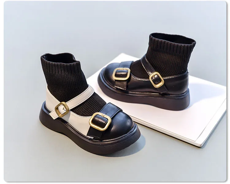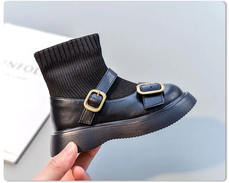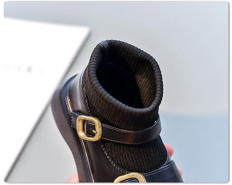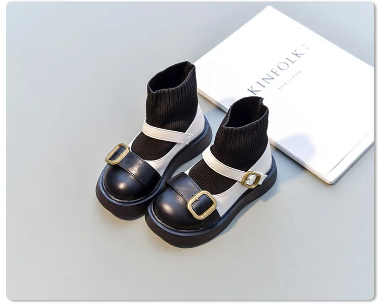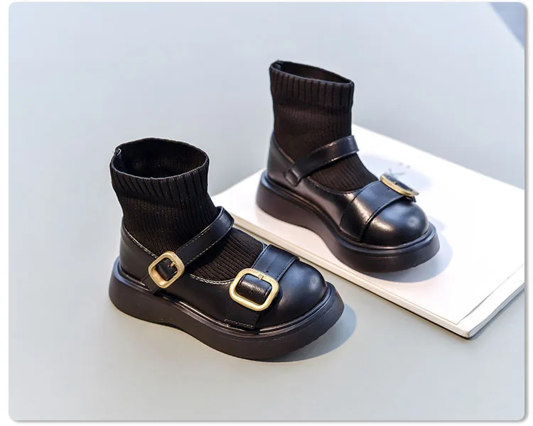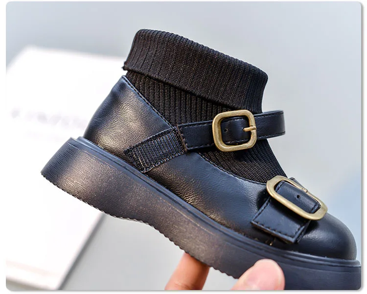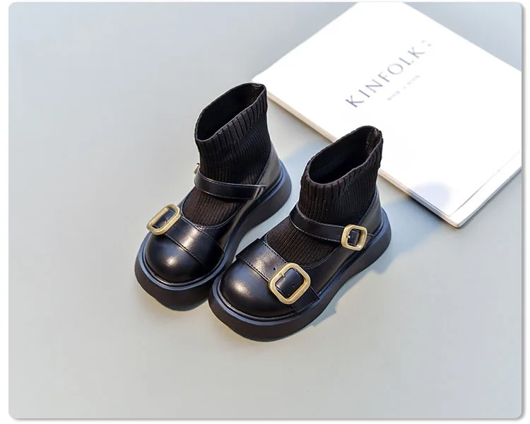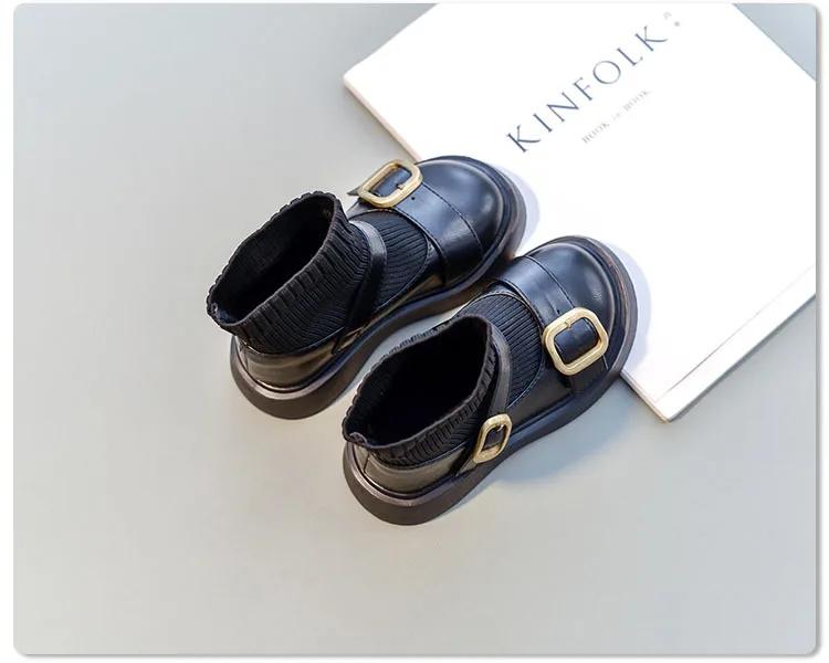Осенние детские ботинки челси, детская брендовая обувь-носки, черные ботинки без шнуровки для маленьких девочек, модная кожаная обувь до щиколотки, мотоциклетные ботинки