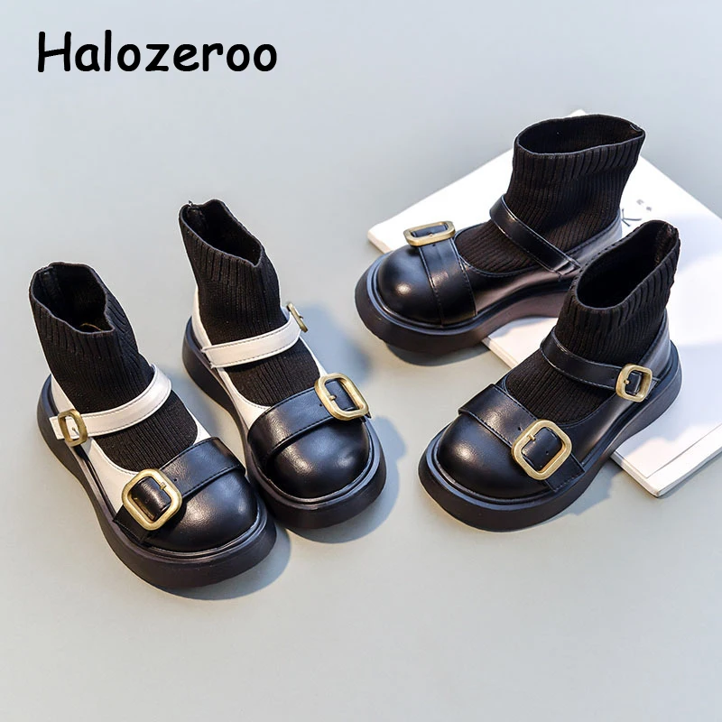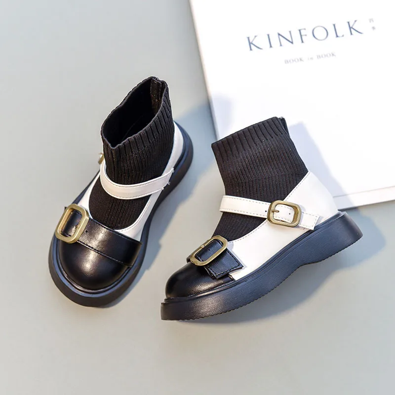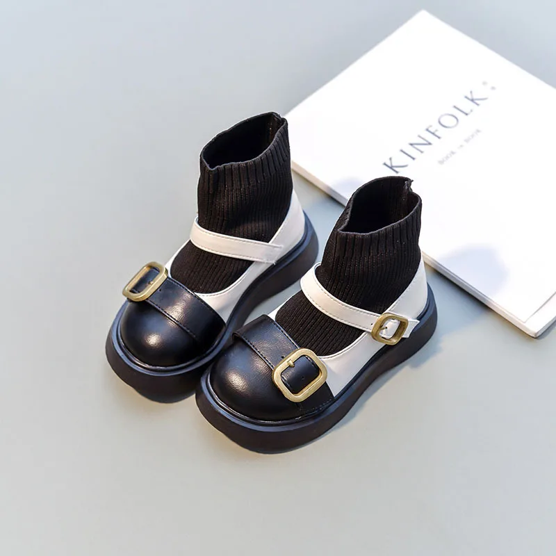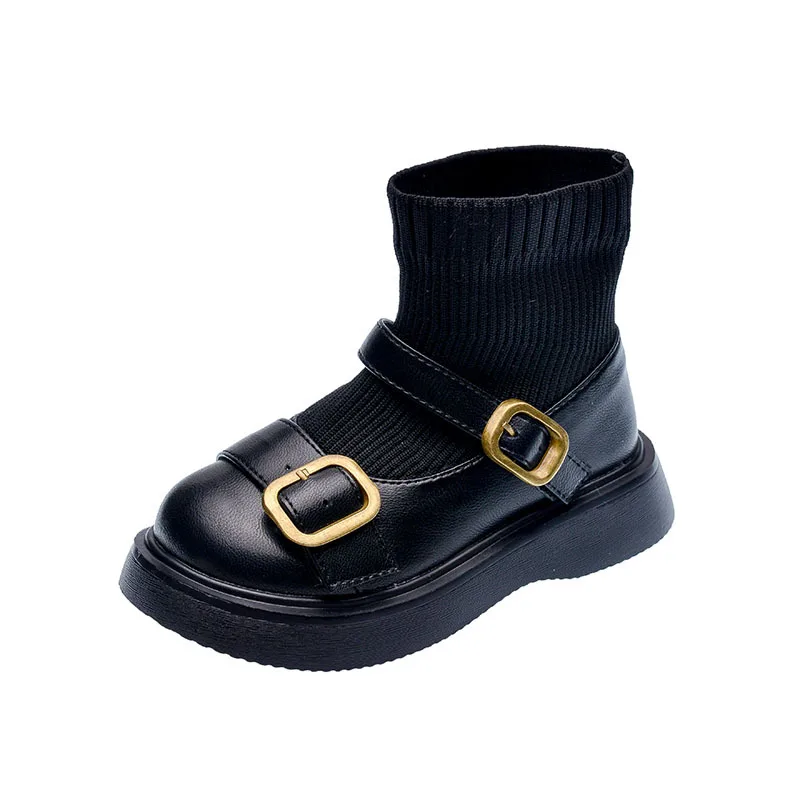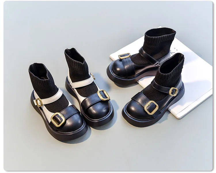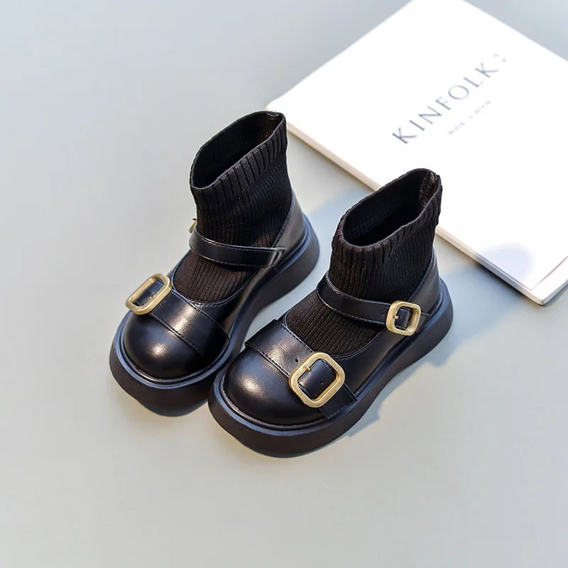 Осенние детские ботинки челси, детская брендовая обувь-носки, черные ботинки без шнуровки для маленьких девочек, модная кожаная обувь до щиколотки, мотоциклетные ботинки