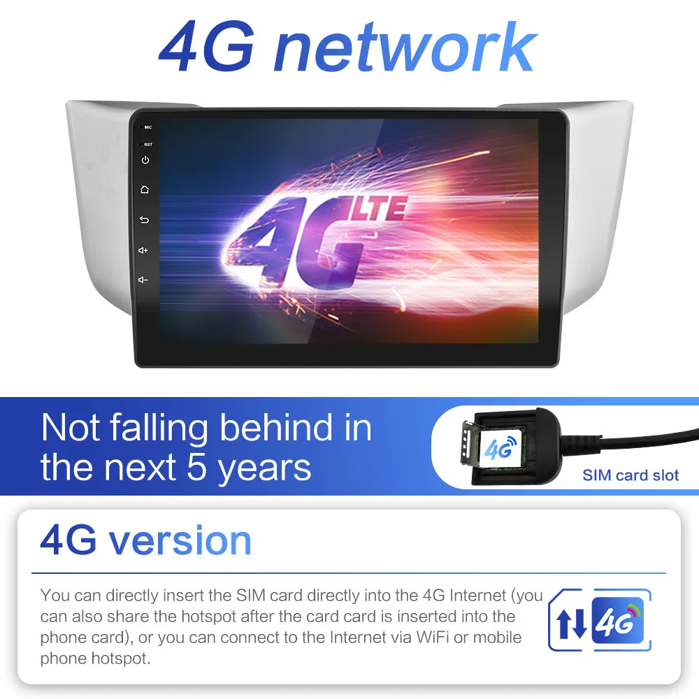 Автомобильная Мультимедийная система, автомагнитола 2 Din на Android 128, 8 ГБ ОЗУ, 10,0 Гб ПЗУ, с четырехъядерным процессором, видеоплеером, для Lexus RX300, RX330, RX350, RX400H, 2004-2009 Carplay