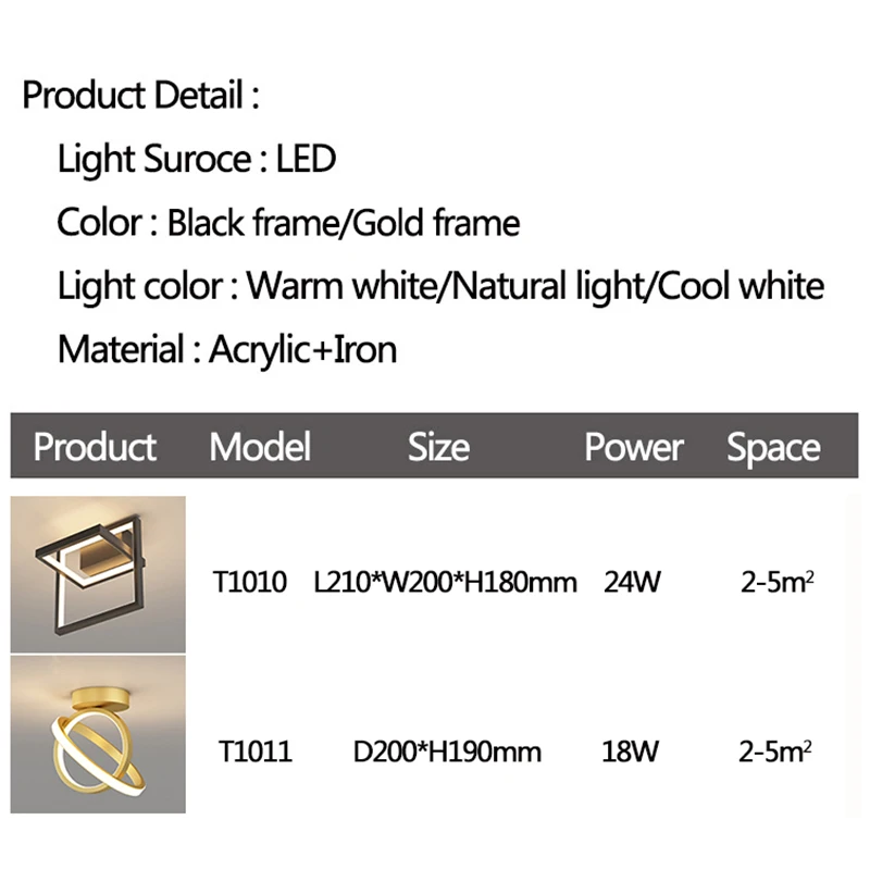 1. Название: современный светодиодный светильник2. Цвет корпуса: черная оправа/Золотая оправа3. Размер: Round-D20 * H19 см, Мощность: 18 Вт, площадь: 3-8 м2Square-L21 * W20 * H18 см, мощность: 24 Вт, площадь: 5-8 м2 4. Материал: металлический корпус лампы, абажур из ПВХ5. Применение: гостиная, спальня, столовая, проход, коридор6. Стиль: простой светодиодный потолочный светильник7. Тип: современные домашние осветительные приборы8. Доставка из Китая9. Гарантия: один год10. Вход: AC 110V 220V