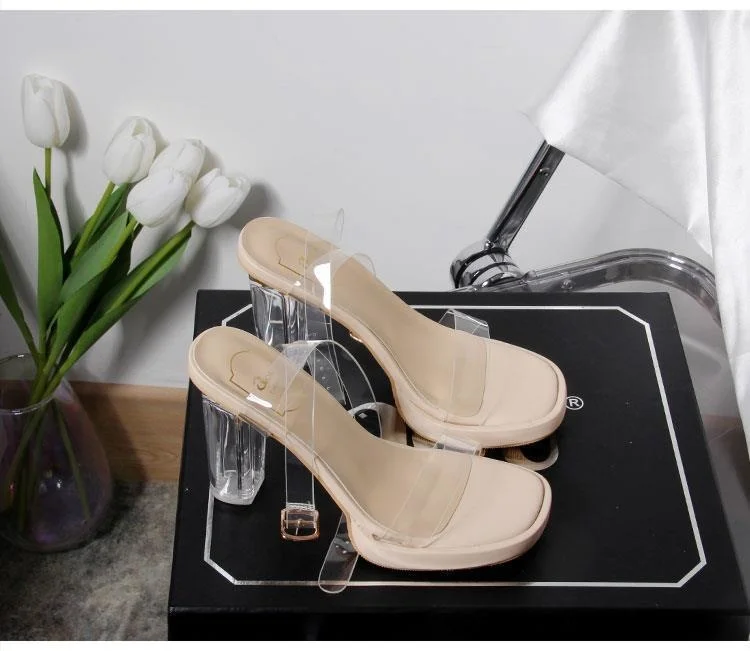 [Быстрый возврат] красные прозрачные Босоножки с открытым носком на толстом каблуке; Водонепроницаемые Босоножки на платформе и высоком каблуке