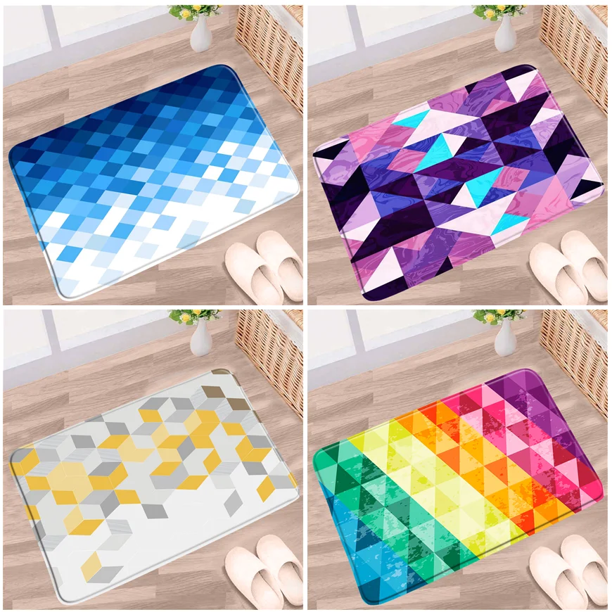Цветной клетчатый коврик для ванной комнаты, современный нескользящий ковер с геометрическим узором, фланелевый Домашний напольный декор, ковер для туалета, ванной, кухни, прихожей, коридора