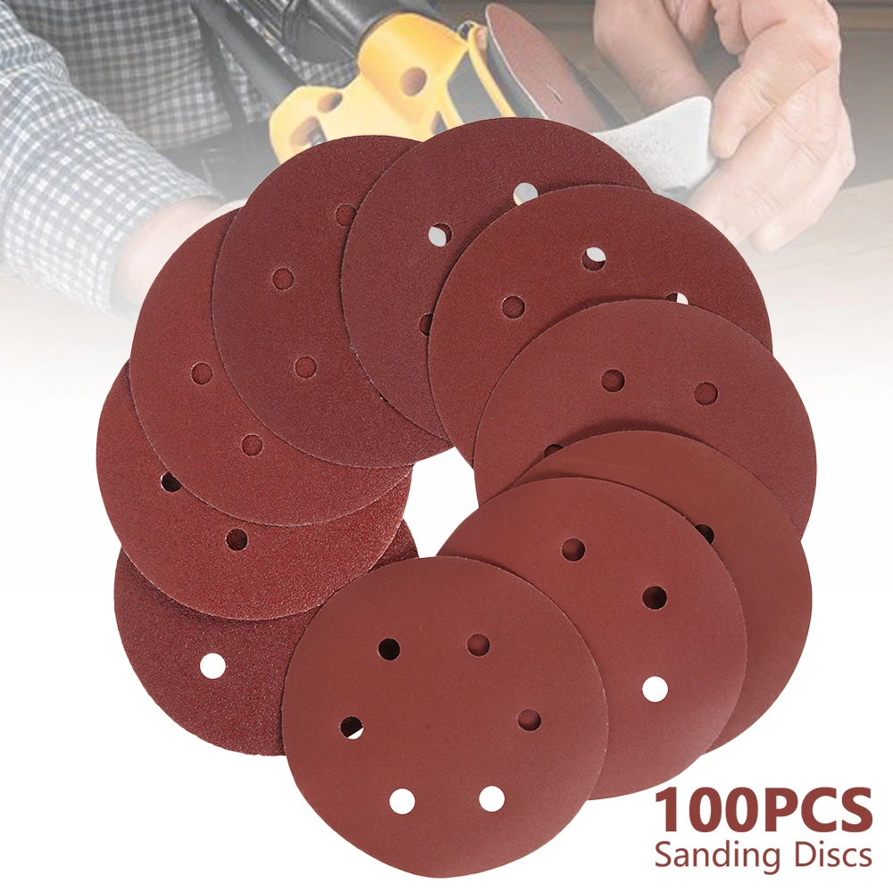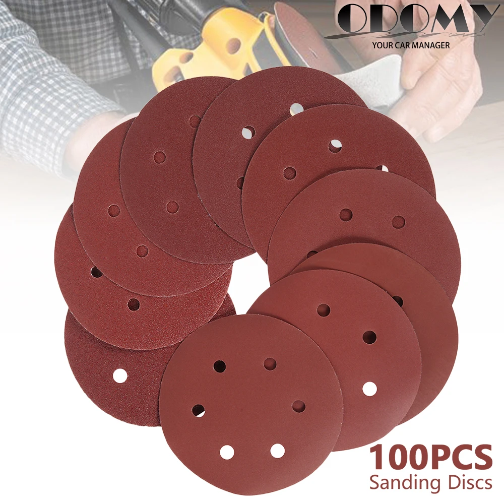 6080100 шт. 5 дюймов 125 мм круглая наждачная бумага восемь отверст...