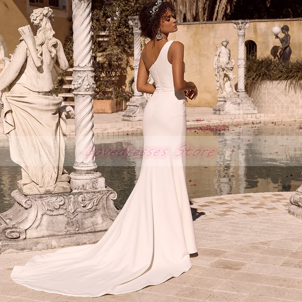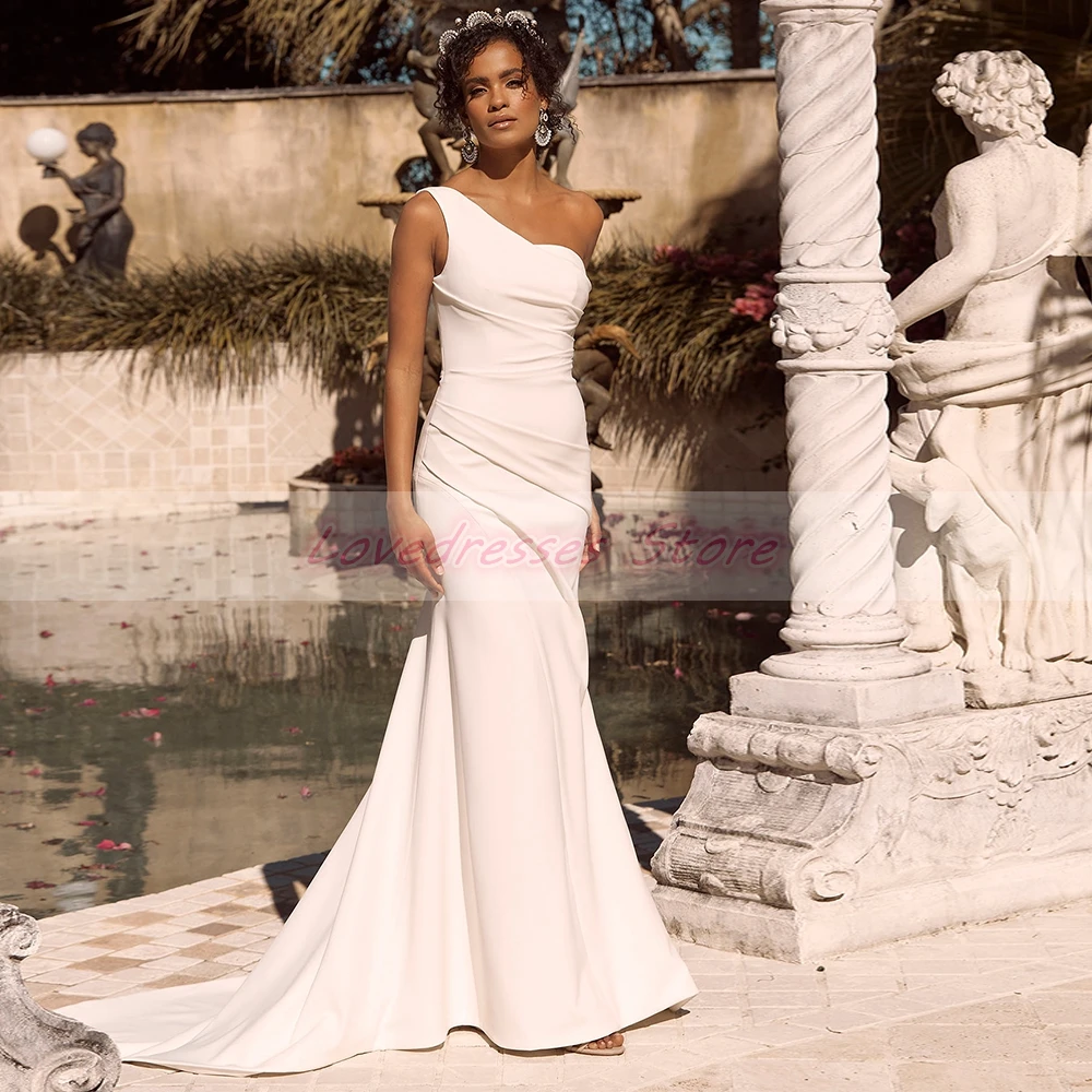 Белое свадебное платье-футляр на одно плечо, без рукавов, без брете...