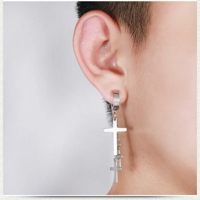 1 шт Kpop бродячий крест для детей, серьги из нержавеющей стали с ц...