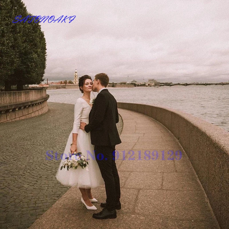 Женское свадебное платье до колен, простое короткое платье невесты ...