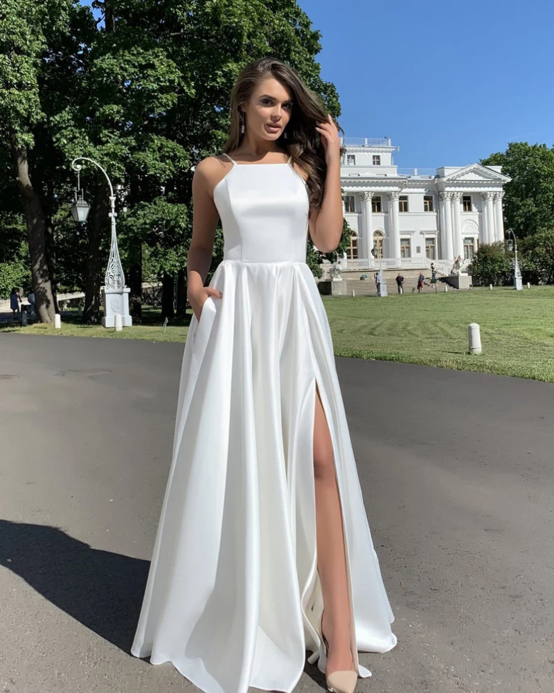 Вечерние платья с высоким разрезом, элегантное атласное вечернее платье без рукавов, длинное платье для свадебной вечеринки