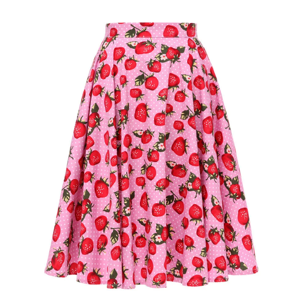 Женская винтажная юбка-качели в горошек, хлопковая трапециевидная юбка средней длины с высокой талией и цветочным принтом в стиле ретро, 2021