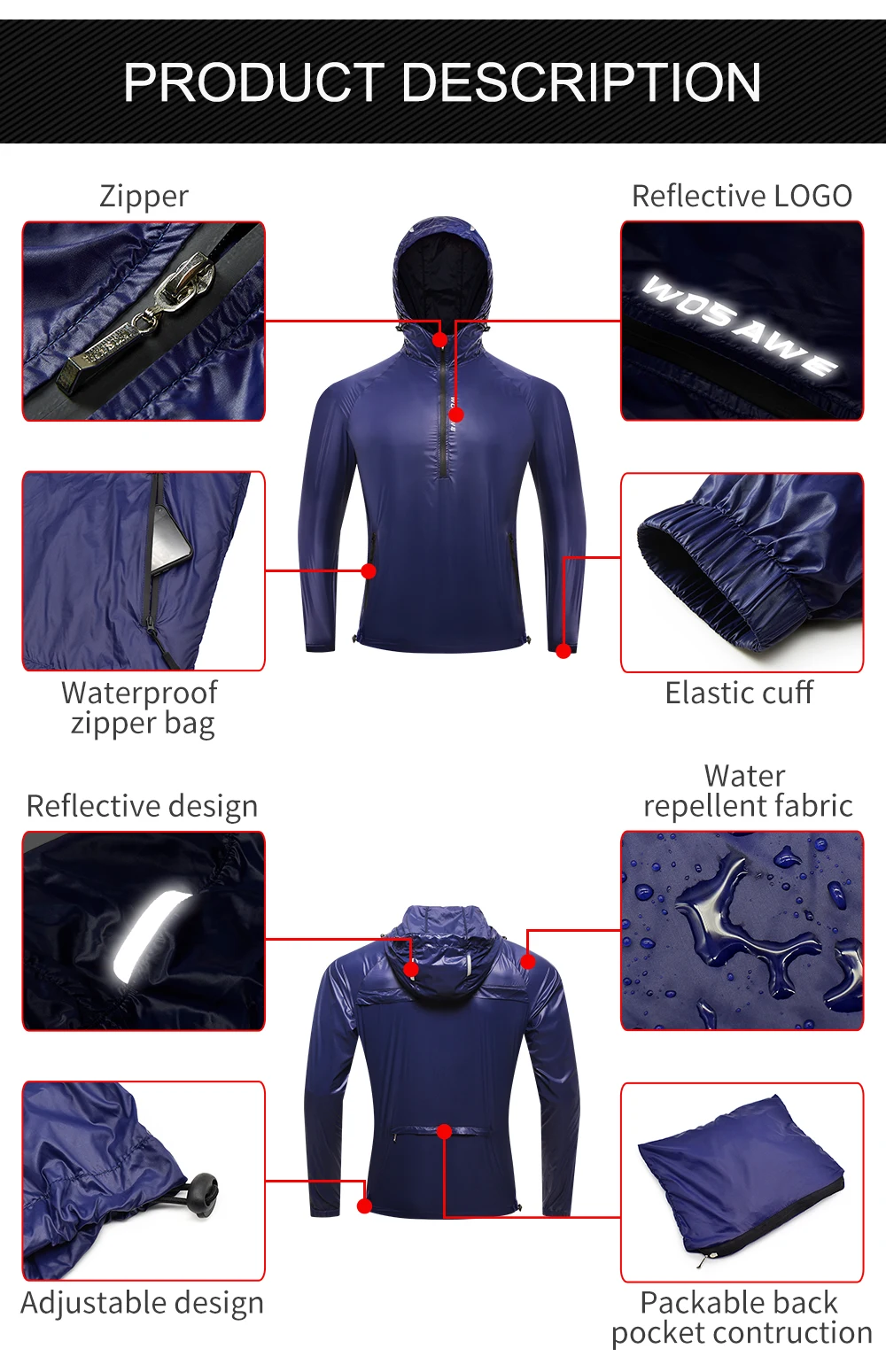 WOSAWE Ультралегкая Светоотражающая Мужская велосипедная куртка длинная водонепроницаемая ветрозащитная горная велосипедная куртка MTB велосипедная ветровка одежда