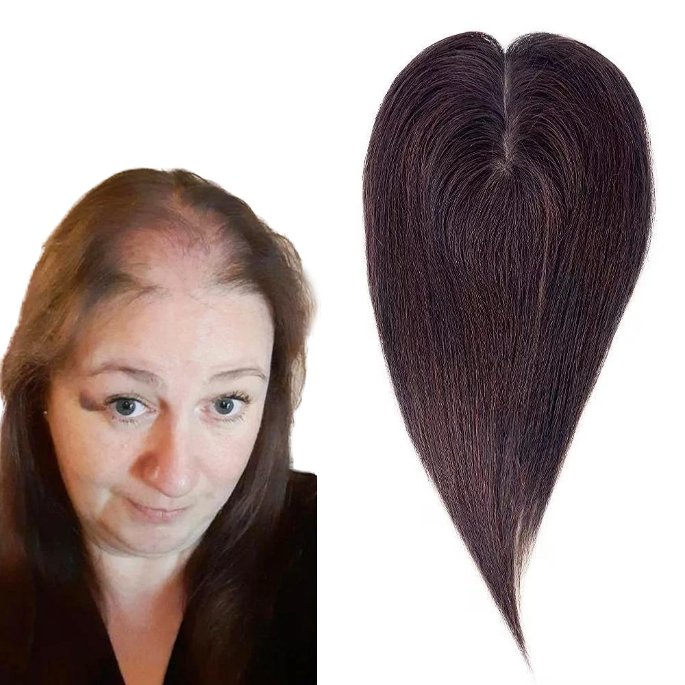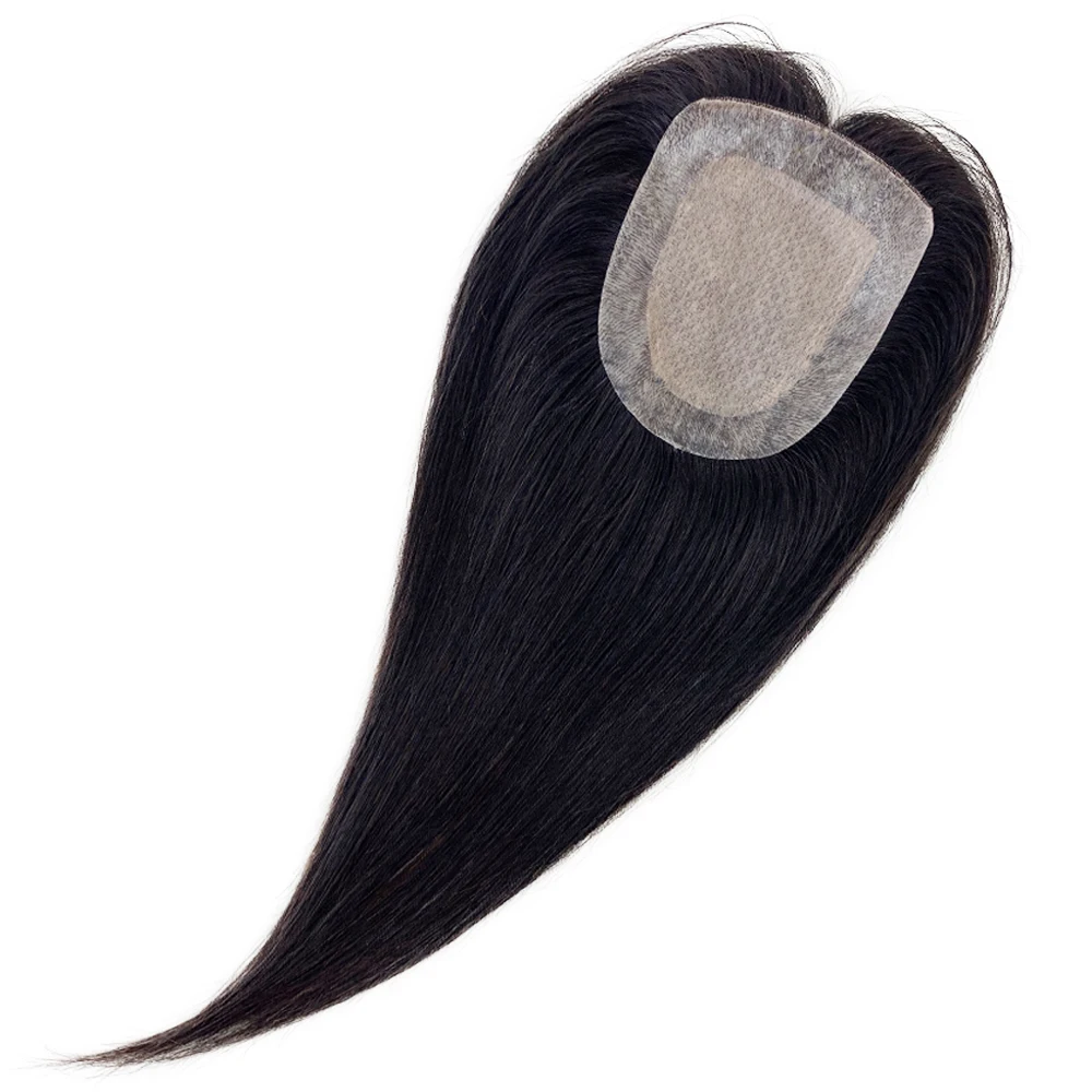 Топпер из искусственной кожи, натуральные волосы для ЛЫСЫХ, Шелковый топ 13x13 см, прямые волосы размером 2 см из ПУ
