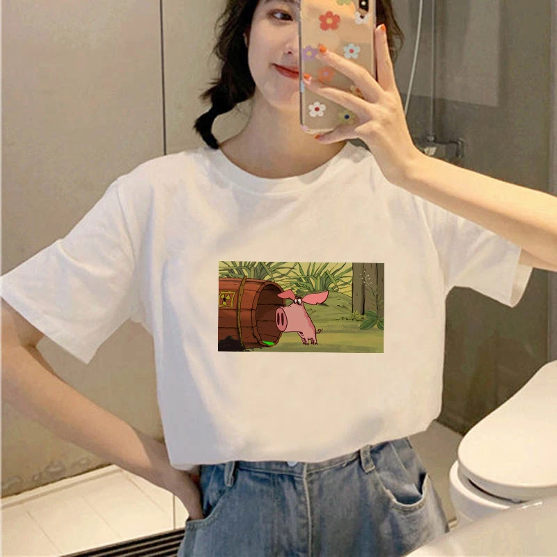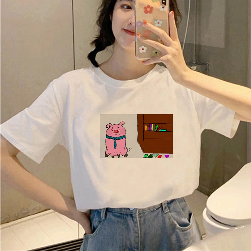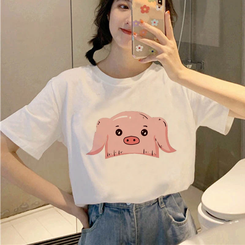 Женская футболка, летняя футболка с коротким рукавом и принтом свинки из мультфильма, корейская мода, Большие футболки, одежда для девочек, женская футболка