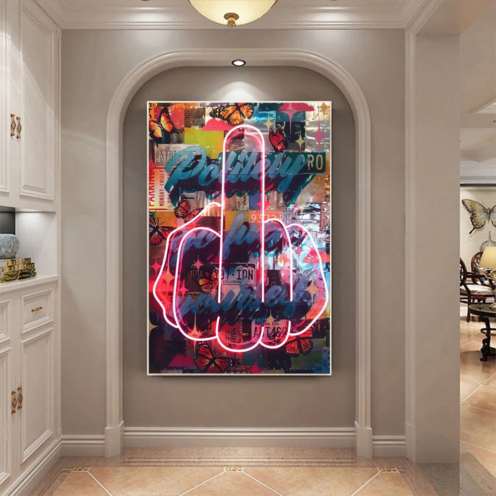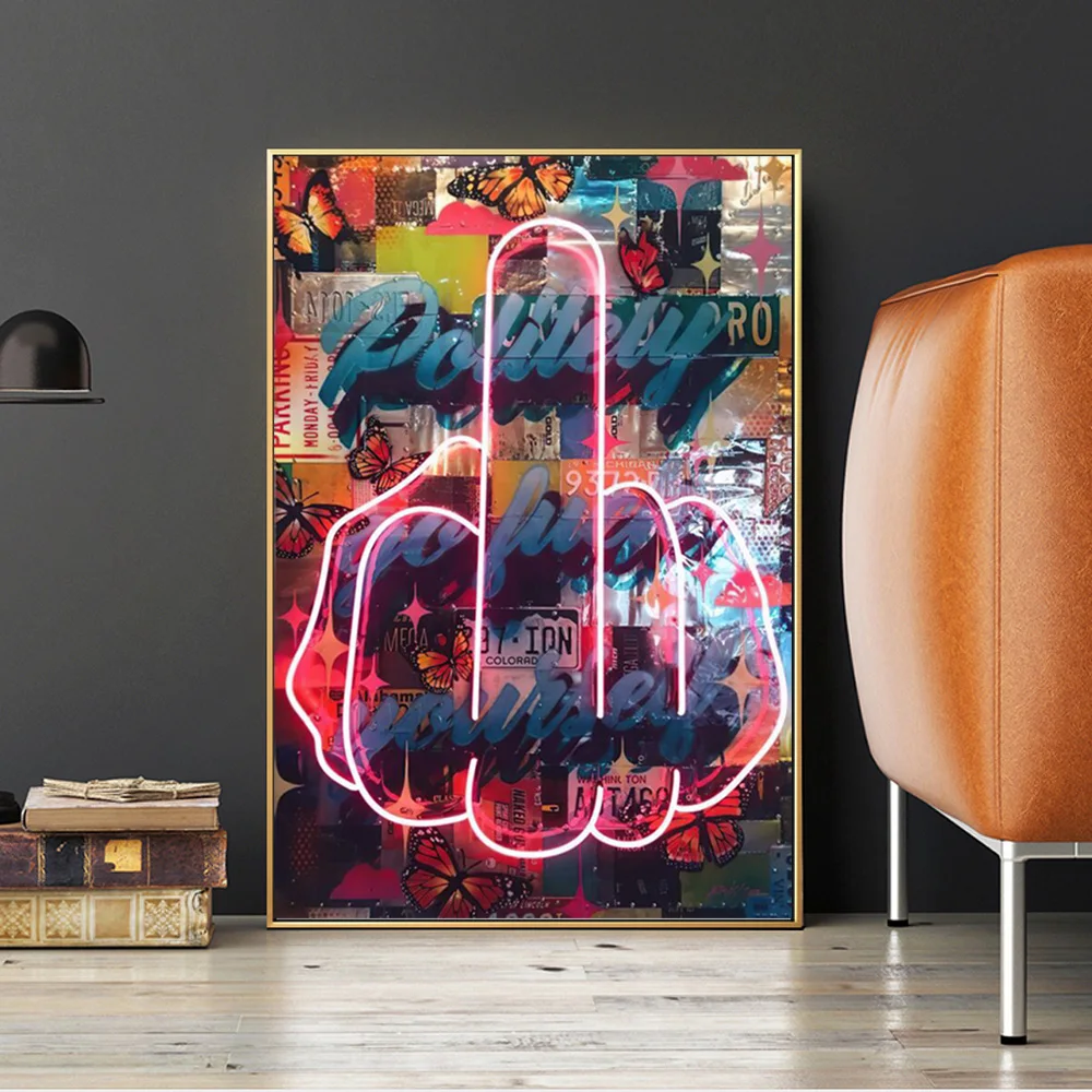 Абстрактный флуоресцентный плакат на средний палец, картина на стену, искусство, смешные декоративные картины на холсте для гостиной