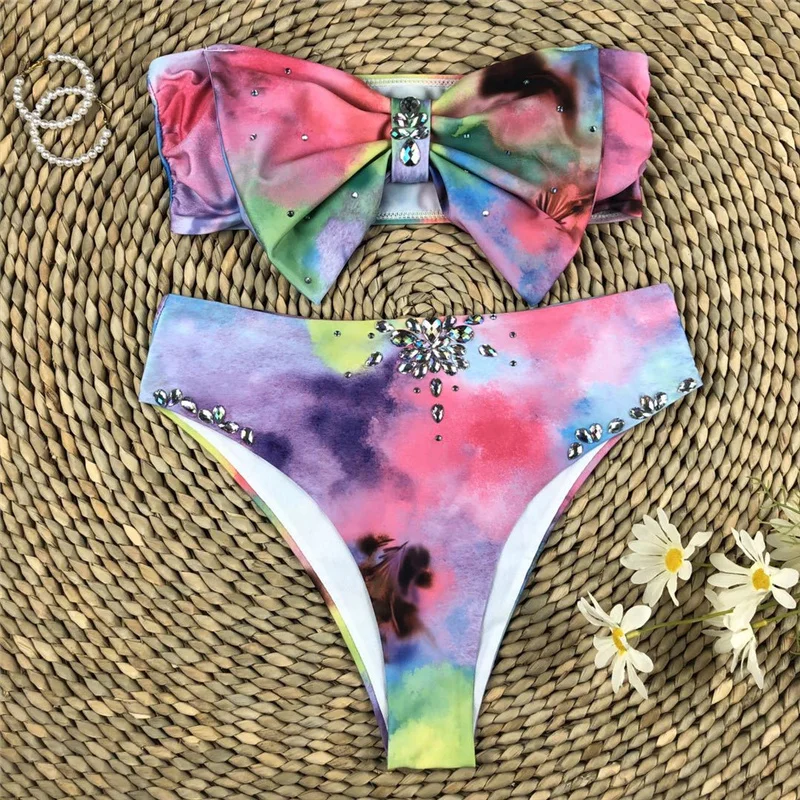 Сексуальный женский комплект бикини Tossy со стразами, Раздельный купальник с завязкой, женский купальник-бандо 2021, комплект из двух предметов, пляжная одежда для плавания