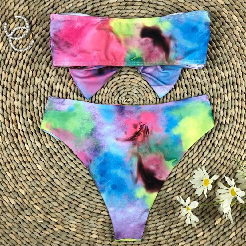 Женский раздельный купальник-бикини, с завышенной талией, с бантом ...