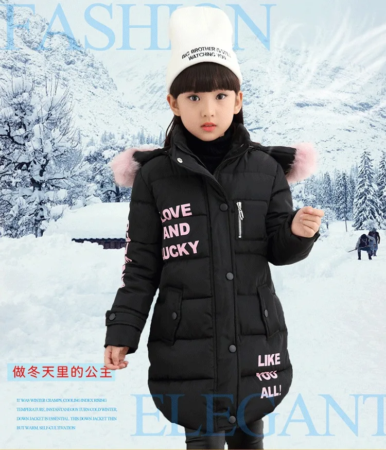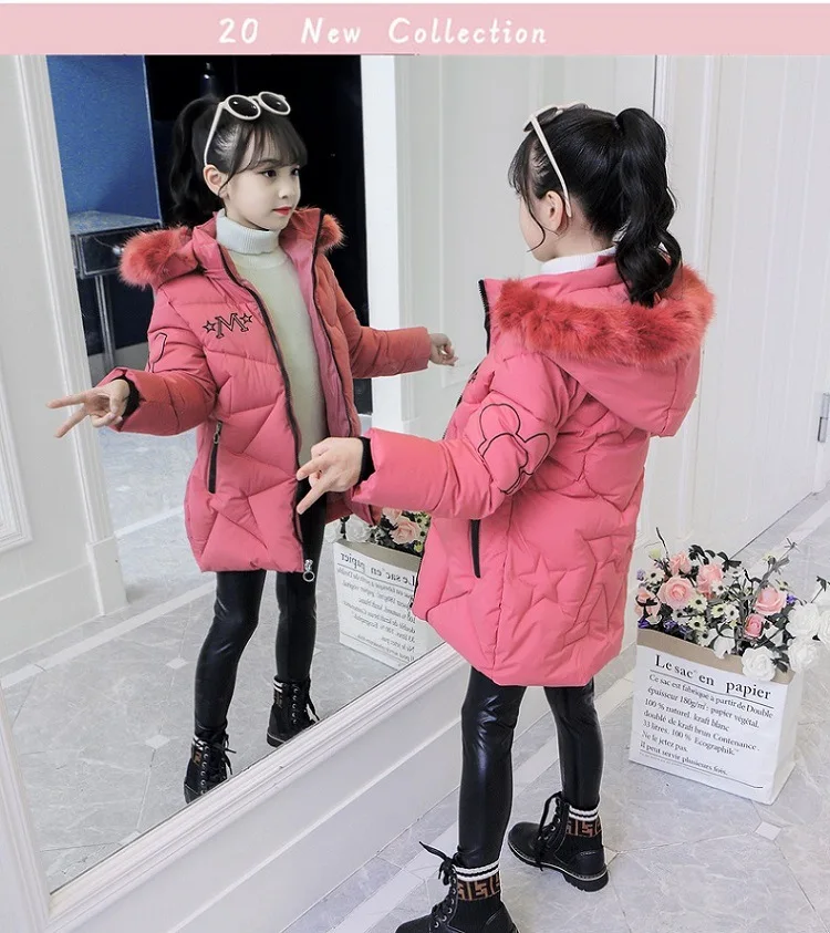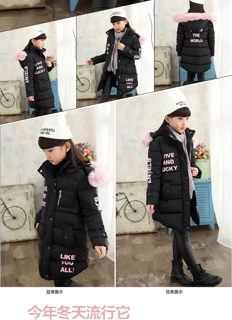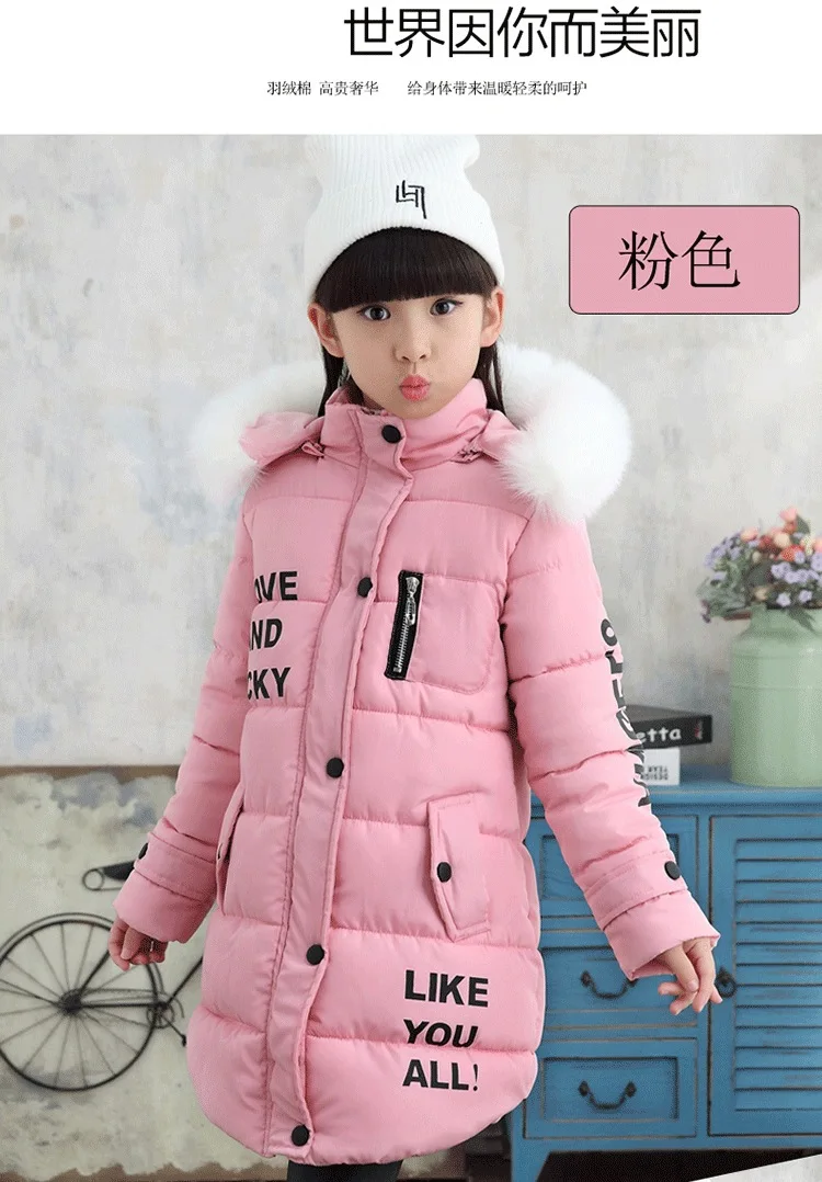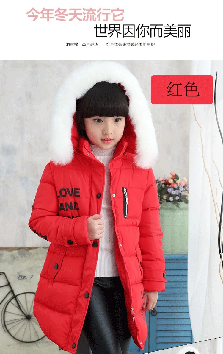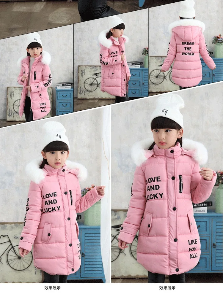 Зимняя плотная ветровка для девочек-подростков, пальто, сохраняющая тепло, куртка с капюшоном для девочек, с меховым воротником, плюс бархатная длинная Стильная верхняя одежда