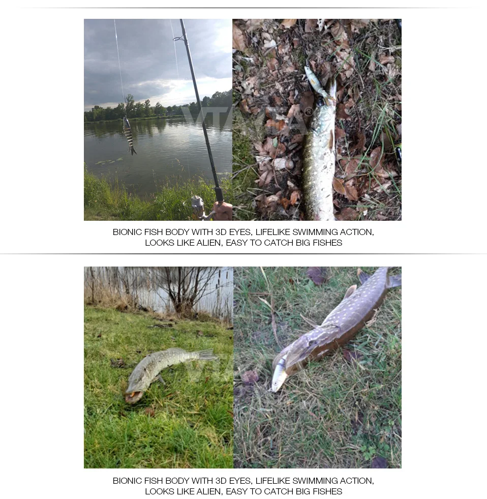 Спецификация:• Длина: 5, 5 дюймов/14 см• Вес: 0,9 oz/25g• Глубина Плавания: 6 футов• Материал: жесткий АБС-пластик, умственный, стальной провод, 3D глаза, погремушка, крючки• Таргетирование рыб: окуня, окуня, щука, мускулов, Роха, форели и т. Д.Характеристика:• Многослойная замедляющая погружение рыболовная приманка является одним из лучших аксессуаров в коробке для снастей.• Сделайте большое действие в воде, чтобы привлечь рыбу и крючки достаточно острые, чтобы ловить рыбу.• Подходит для морской и пресной воды, прекрасная приманка для активных спортивных рыбаков.Описание:• Реалистичные приманки в 8 сегментах: спроектированы с 8-сегментным многосоединенным корпусом, рыболовная приманка может медленно утонуть и двигаться гибко в воде. Кроме того, пожизненные плавательные действия делают его притягивающим больше уловов и заставляют ловить рыбу-хищника.• Высокая симуляция: с 3D реалистичными глазами и жемчужным порошковым покрытием, эта приманка выглядит очень деликатной и яркой, которая выглядит как настоящая рыба. Идеальная рыболовная приманка, которая легко жует рыбы-мишени.• Вибрация басов: Изготовлен из высококачественного АБС-материала и оснащен встроенной погремушкой, эта приманка vibe может непрерывно излучать рыбий звук во время плавания, чтобы сжечь кормление рыб и побудить их атаковать.• Широко рыболовные виды: Эта приманка для ловли басов может широко использоваться для ловли басов, желтых окуня, щуки, мускуса, Роха, форели, Снука. Лосось и т. Д. Этот плавающий приманка вполне подходит как для соленой воды, так и для пресной воды и хорошо функционирует во всех водных слоях.