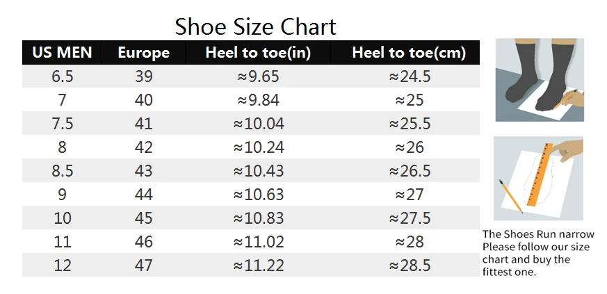 Как выбрать размер? Пожалуйста, измерьте длину вашей стопы, как на фото. Если ваша стопа толстая или широкая, мы предлагаем вам выбрать на один размер больше, если вы не уверены, пожалуйста, свяжитесь с нами. Найдите европейский размер в таблице размеров по длине вашей стопы.