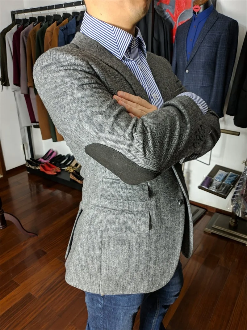 Мужской твидовый костюм с отложным воротником, пиджак с вырезом лодочкой в елочку, классический костюм, жакет с двойным разрезом, 2022