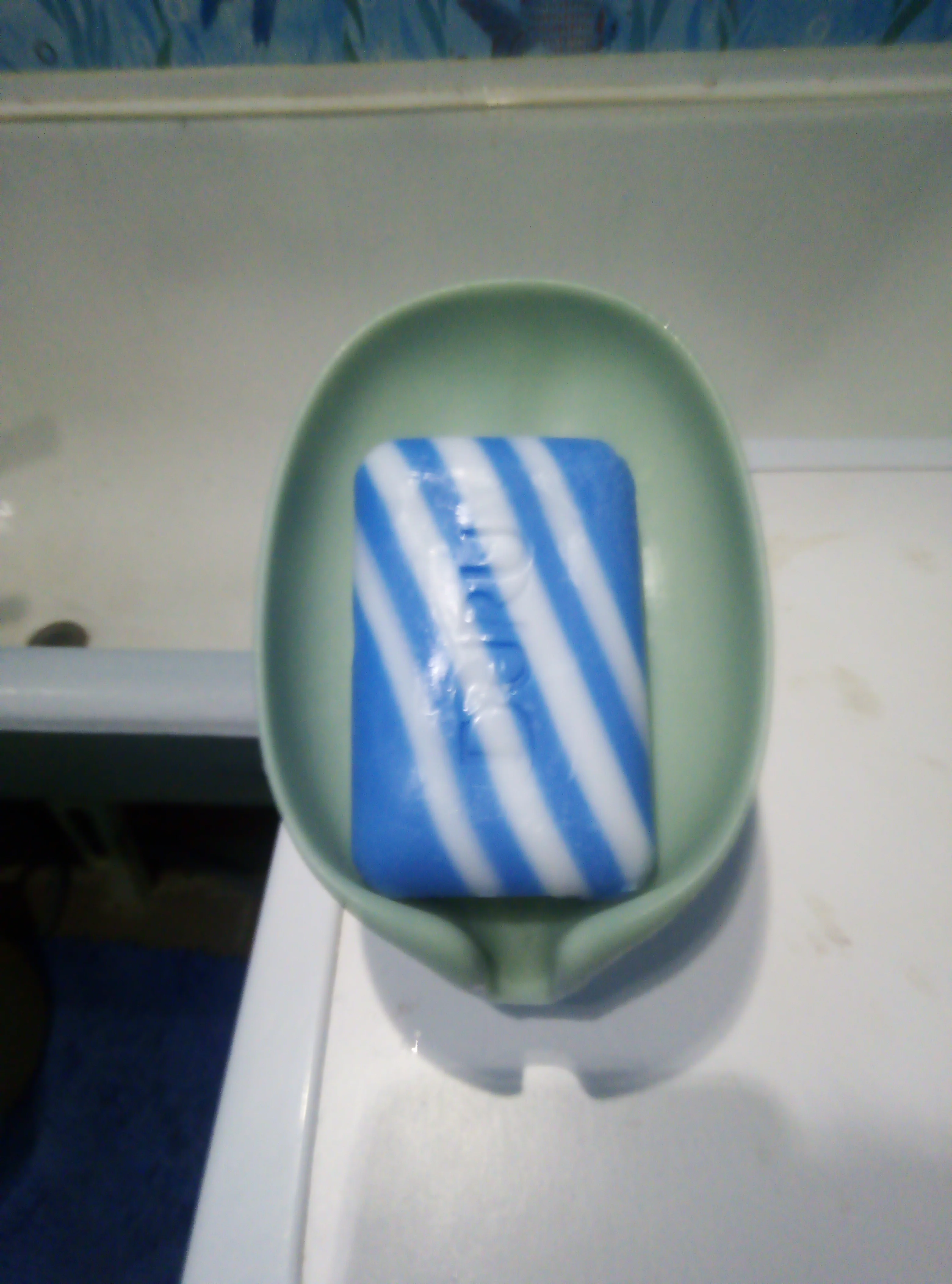 It’s not blue as I expected it’s green. But works well. Sticks well and holds good the soap.