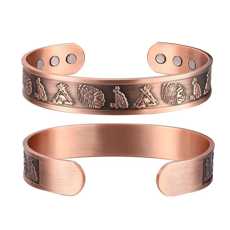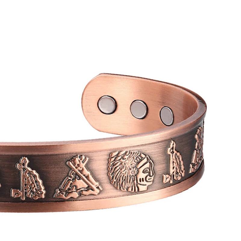 OKtrendy магнитные браслеты из чистой меди для мужчин регулируемые 15 мм манжеты Магнитная терапия ювелирные изделия Резные широкие браслеты на запястье