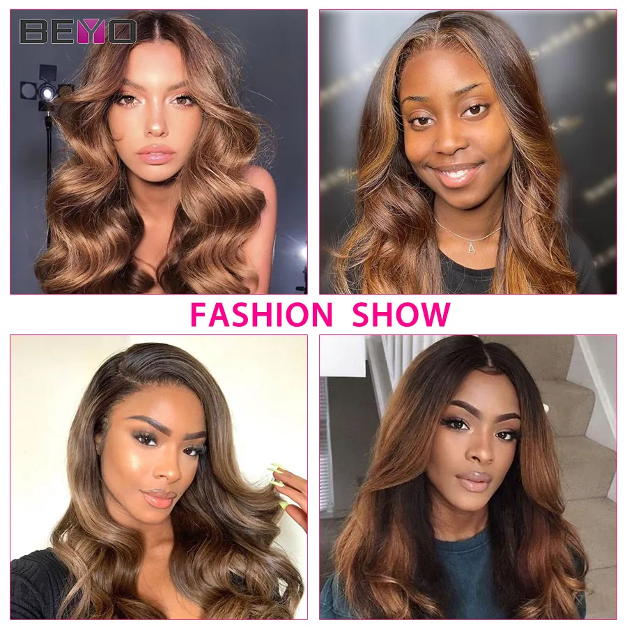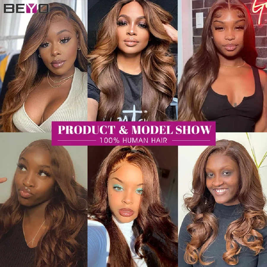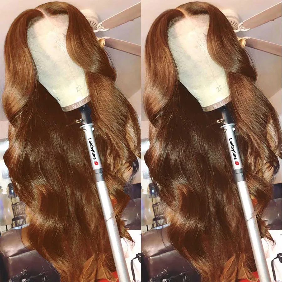 Светильник-коричневые волнистые человеческие волосы, парики HD на сетке, фронтальные парики, предварительно выщипанные Детские волосы, T-образные цветные волнистые человеческие волосы, парики