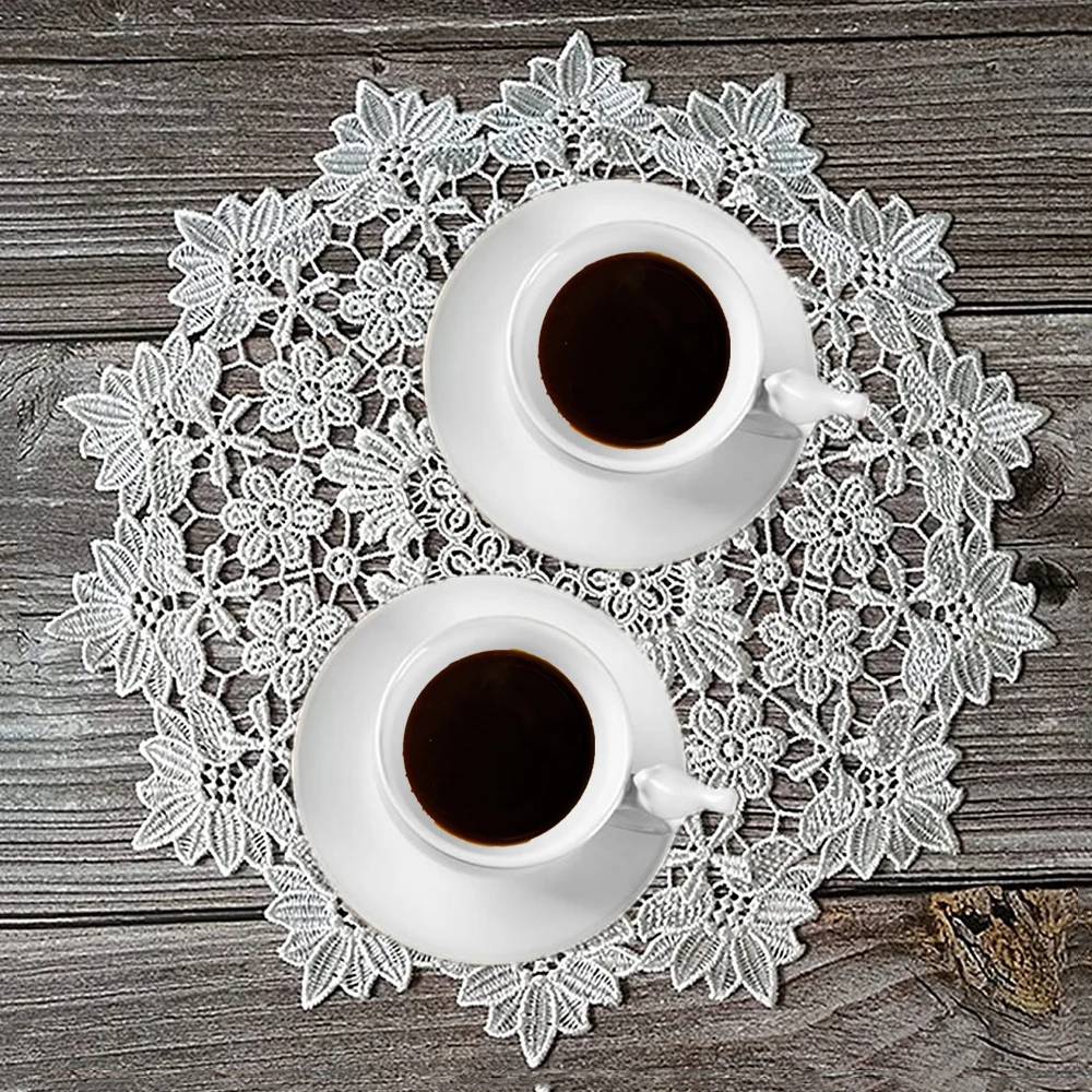 Белый кружевной коврик для стола, круглая подставка, тканевая чаша, чашка, коврик для посуды, вышитая настольная Дорожка в нордическом стиле, украшение вазы