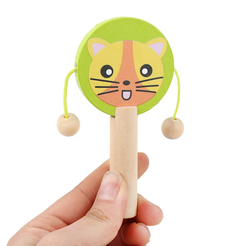 Деревянный барабан-погремушка, музыкальный инструмент, перкуссионные игрушки, Мультяшные деревянные детские игрушки, детский инструмент для раннего развития, подарки