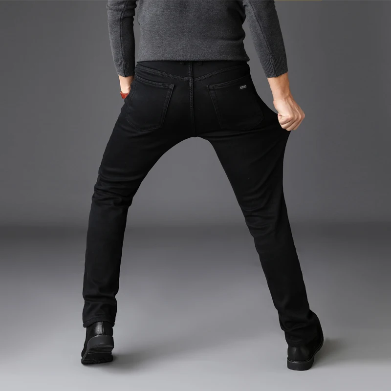 Зимние теплые флисовые облегающие джинсовые брюки 2022 мужские классические повседневные Черные Модные Удобные Стрейчевые деловые джинсы брюки