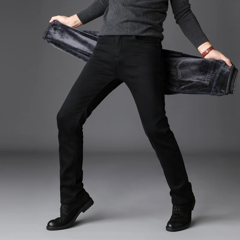 Мужские теплые бархатные джинсы, черные облегающие эластичные джинс...