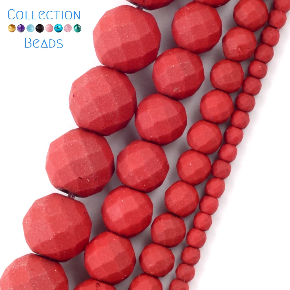 Натуральный камень красный резиновый граненый гематитовый круглый разделитель бусины для DIY ювелирных изделий ожерелье браслет аксессуары 15 ''2-10 мм