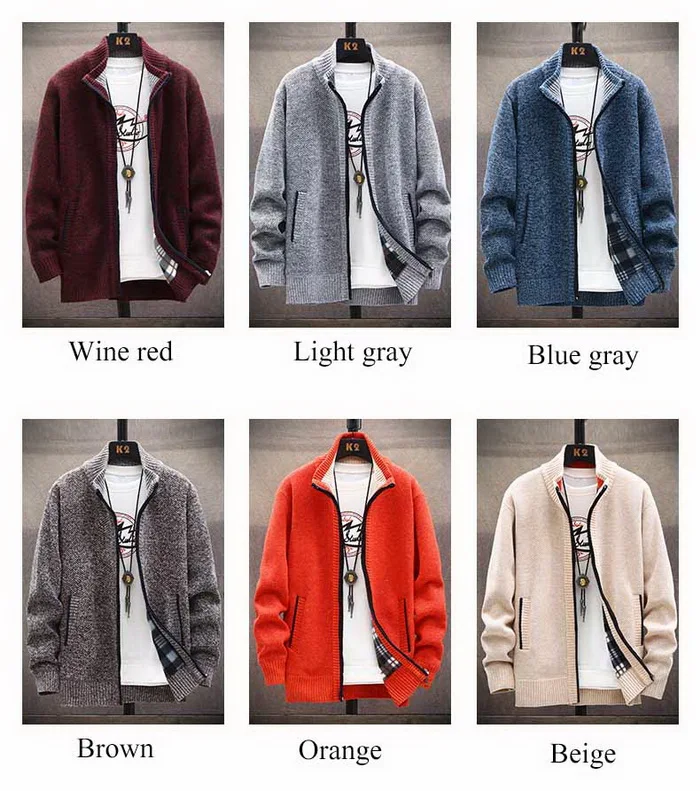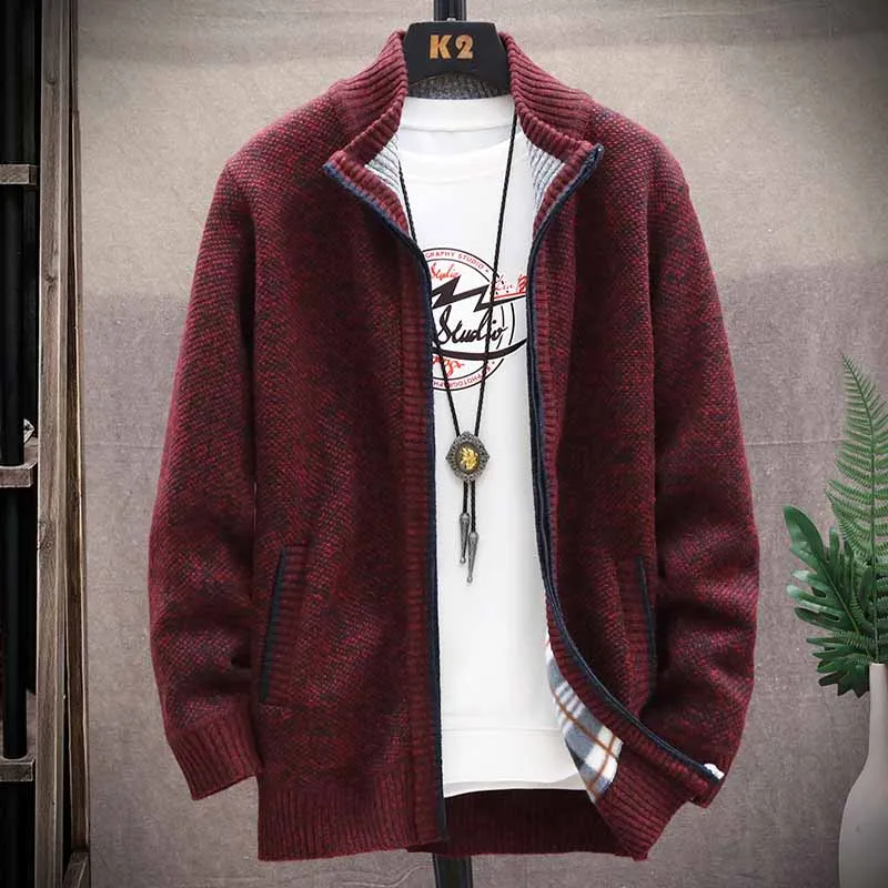 Мужской теплый кардиган с длинным рукавом, на молнии