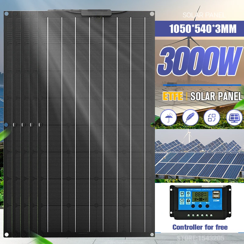 Комплект гибкой солнечной панели ETFE 3000 Вт, Полная панель внешнего аккумулятора, система генератора солнечной энергии, зарядное устройство для смартфона, кемпинга, автомобиля
