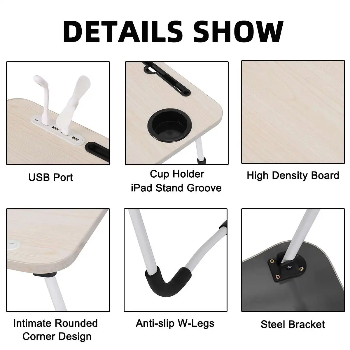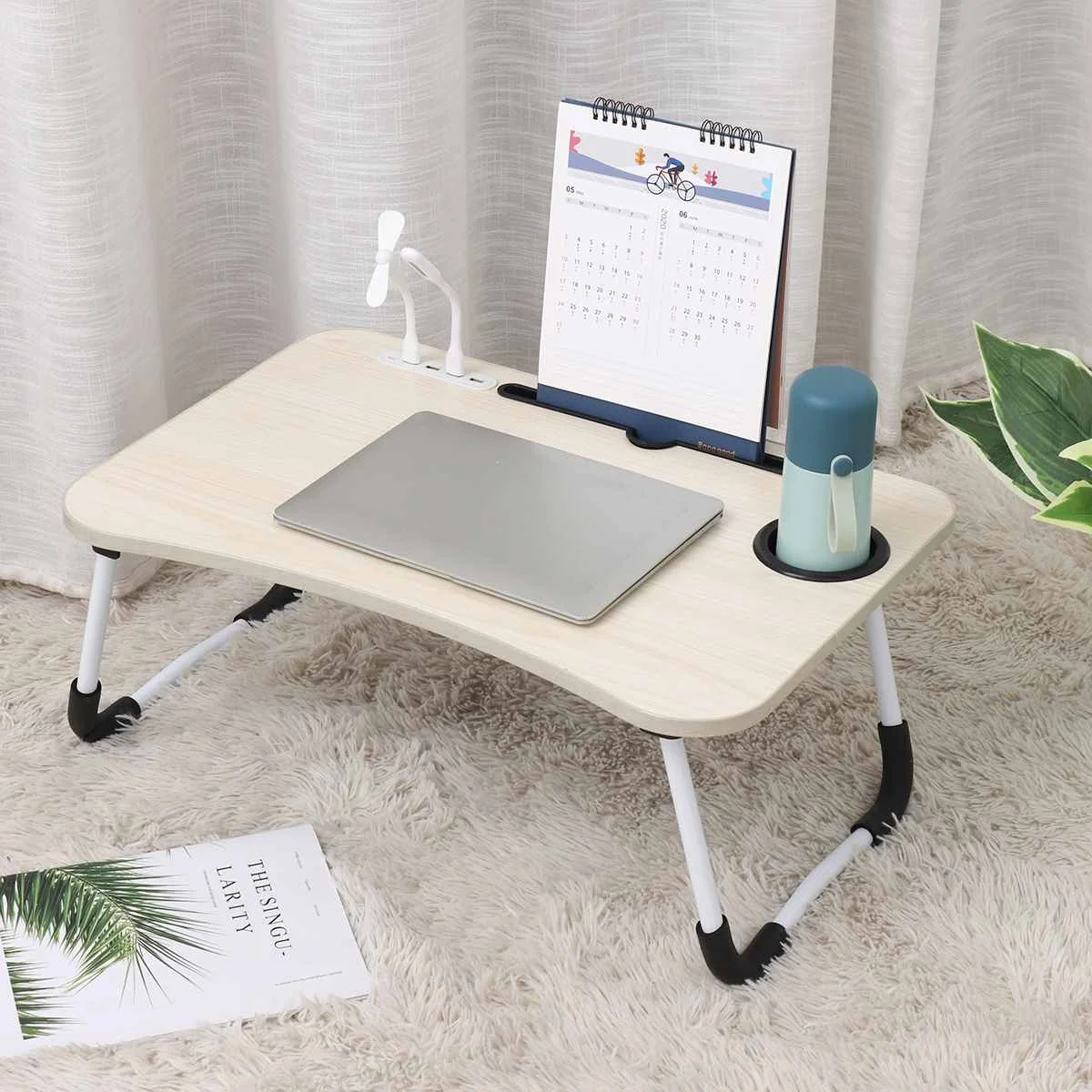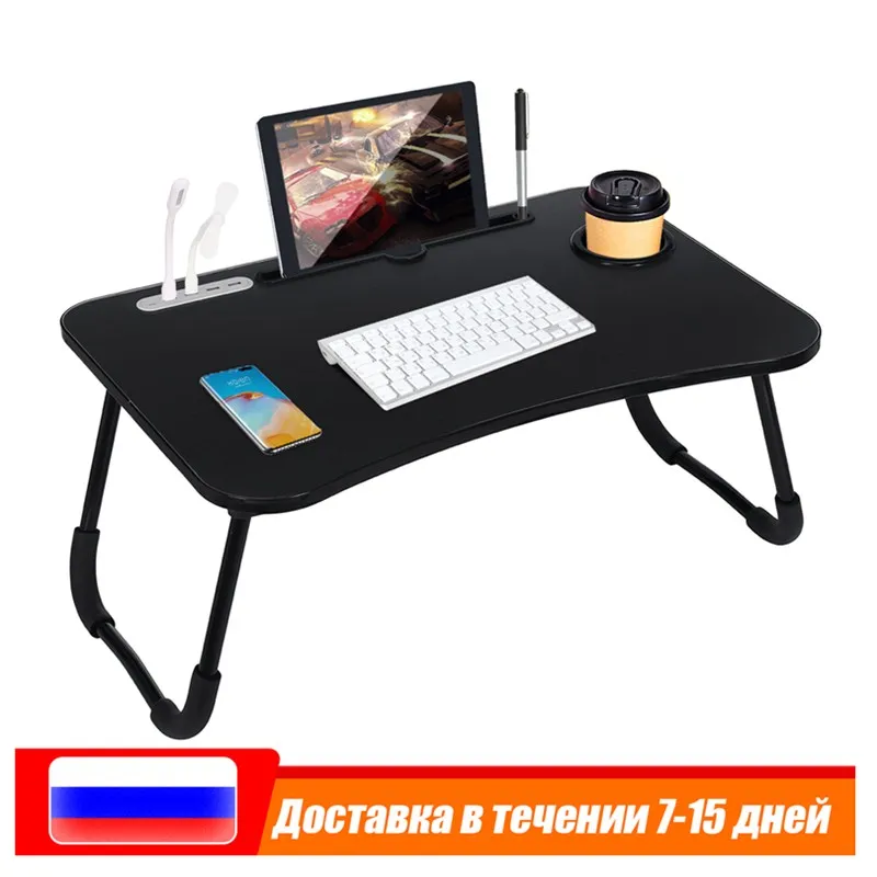 Складной компьютерный стол с USB, деревянная подставка для ноутбука, учебный столик для кровати, дивана, подставка для сервировки чая светильник ким вентилятором