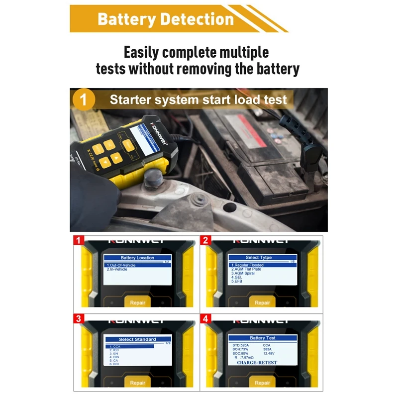 Устройство для диагностики автомобильных аккумуляторов KONNWEI KW51...