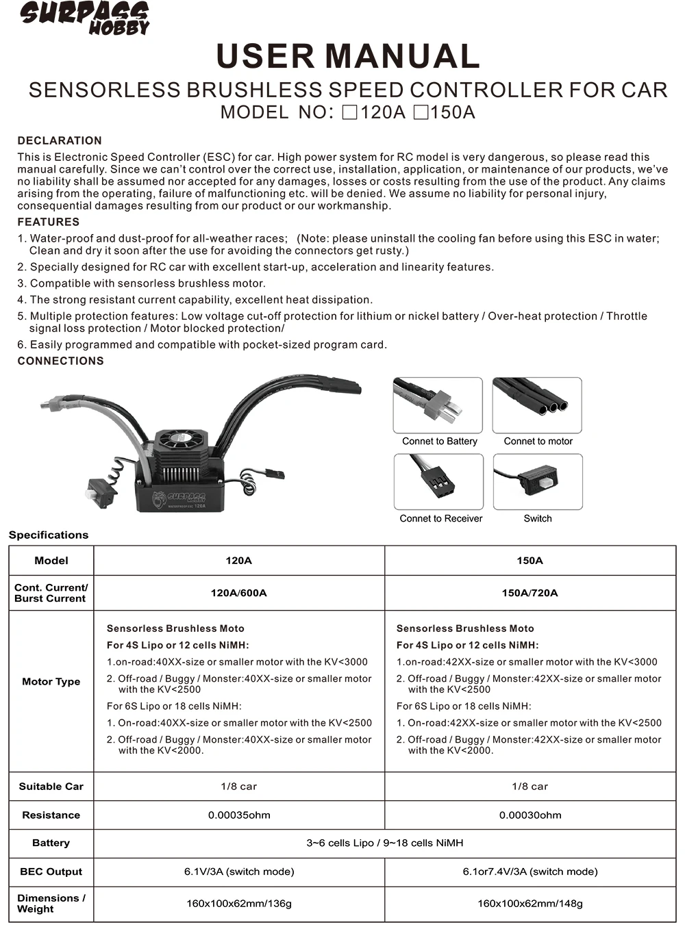 Страна: BR Color: 5200KV 120A XT60 Доставка: Standard Shipping 06.05.2023