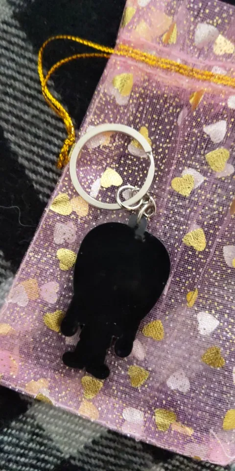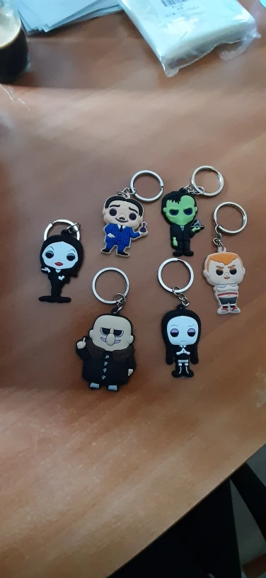 Очень красиво сделано. Купил для друга, который является большим поклонником семейного шоу Adams. Им понравится. Кольцо для ключей является прочным, а изображение является гибким, как ПВХ/силиконовый материал. Продавец отправил очень быстро. Может заказать еще немного. Этот продавец делает милые подарки.
