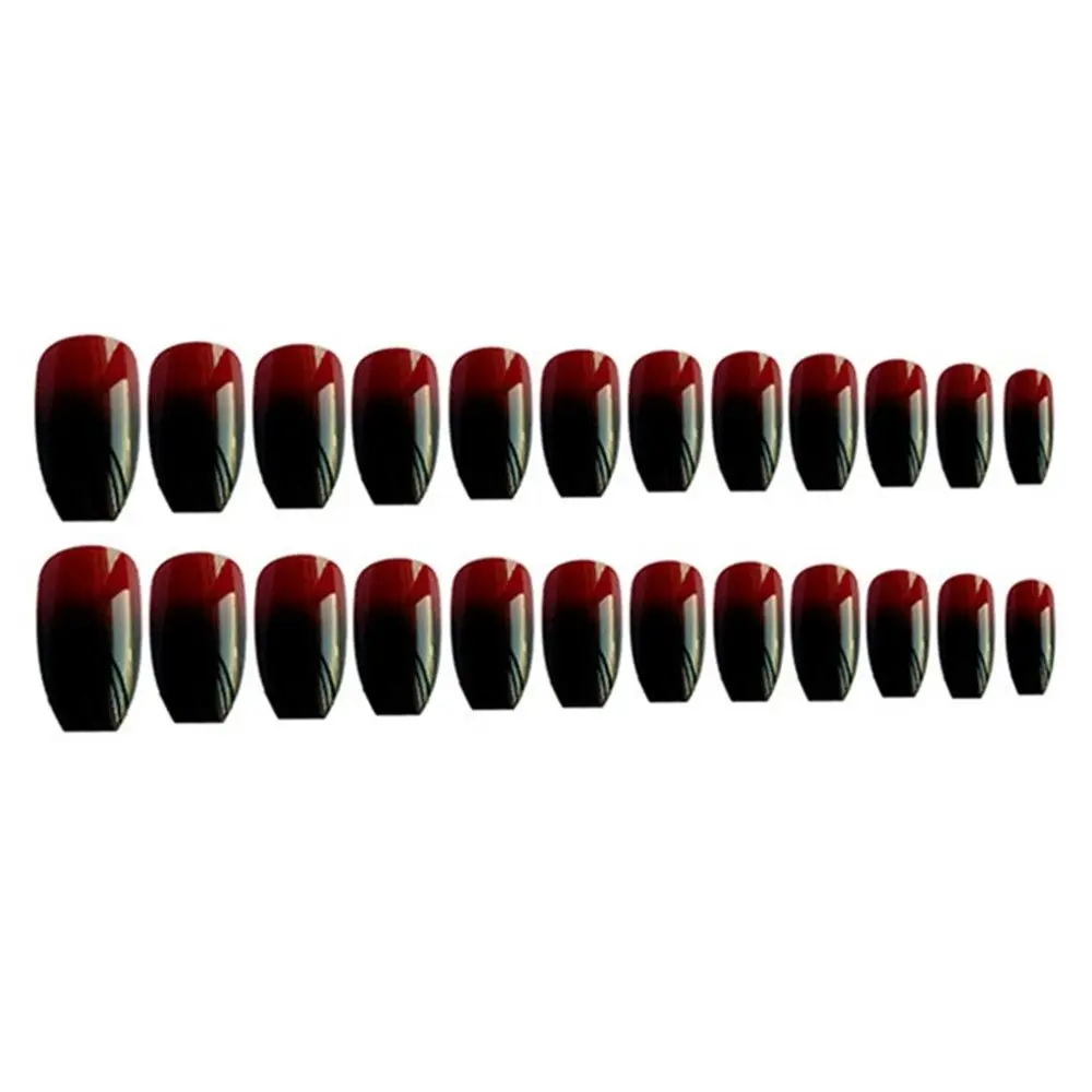 24 шт.корт. Искусственные ногти с клеем черно-красные градиенты носится длинный абзац модный маникюрный пластырь накладные письма нажимайте на девушку