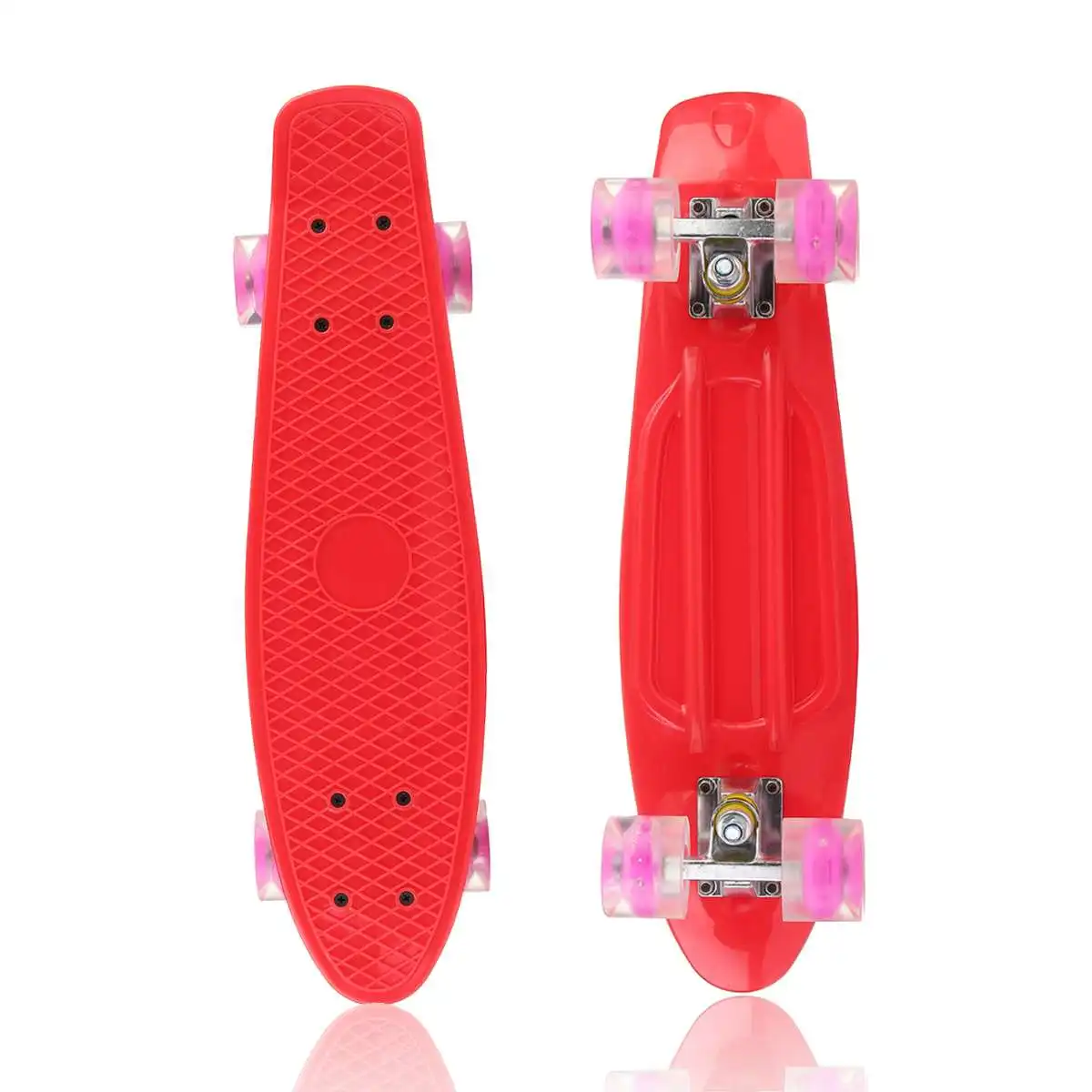 Скейтборд пластиковый для девочек и мальчиков, мини Лонгборд в стиле ретро, скейтборд с мигасветильник, четыре колеса, Уличный спорт, 22 дюйма