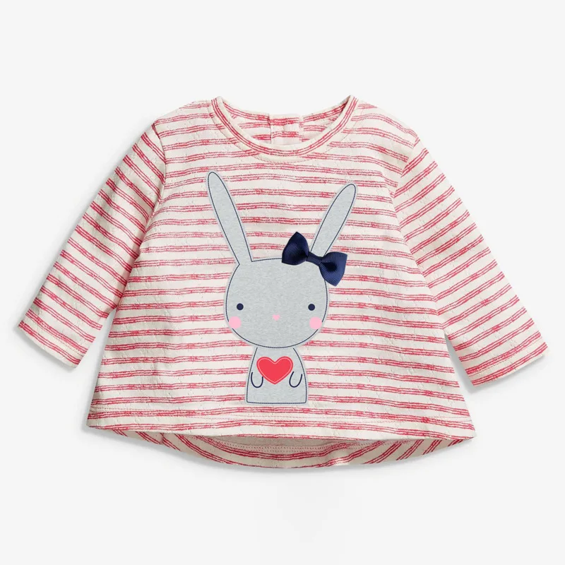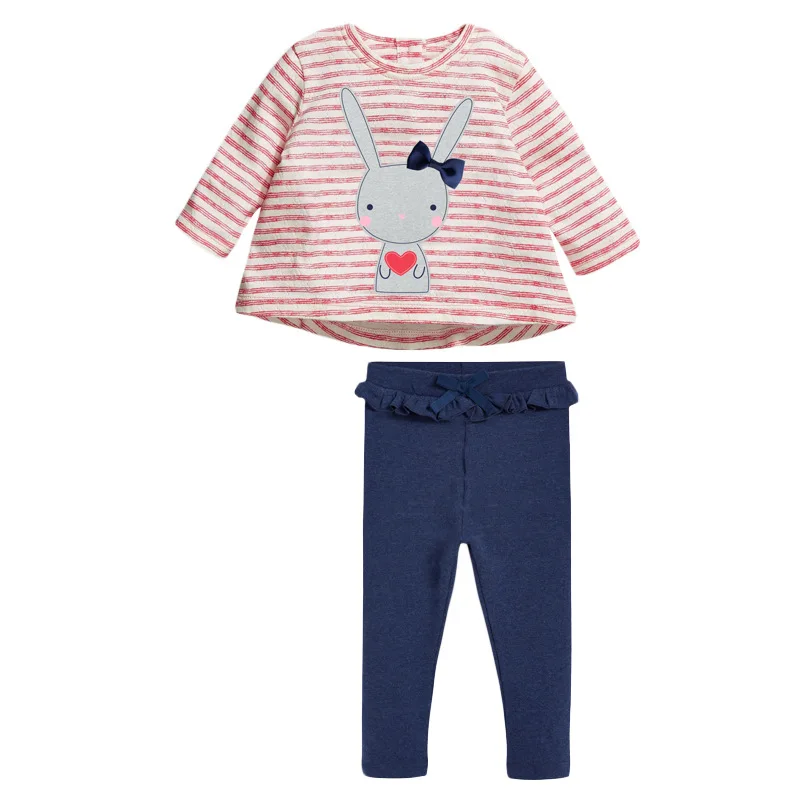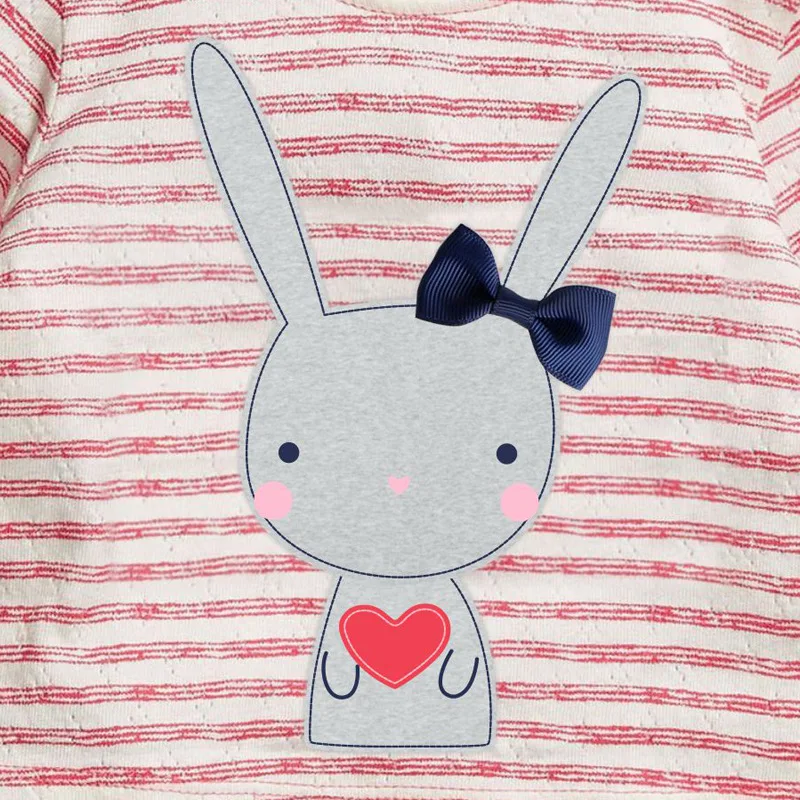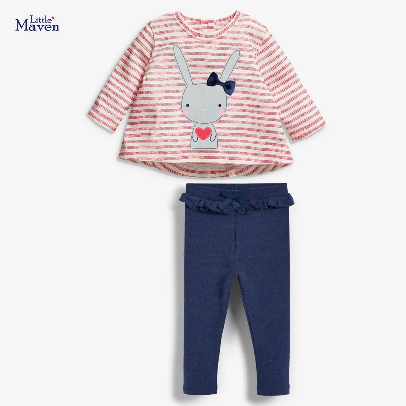 Осенняя одежда для маленьких девочек осенний Детский комплект, хлопковый костюм из двух предметов полосатая рубашка с кроликом для маленьких девочек + однотонные темно-синие штаны От 2 до 7 лет