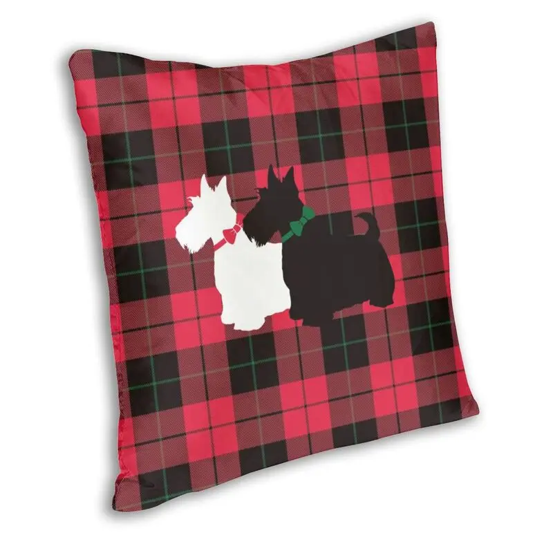 Шотландская собака-терьер на красной и черной шотландской клетке ст...