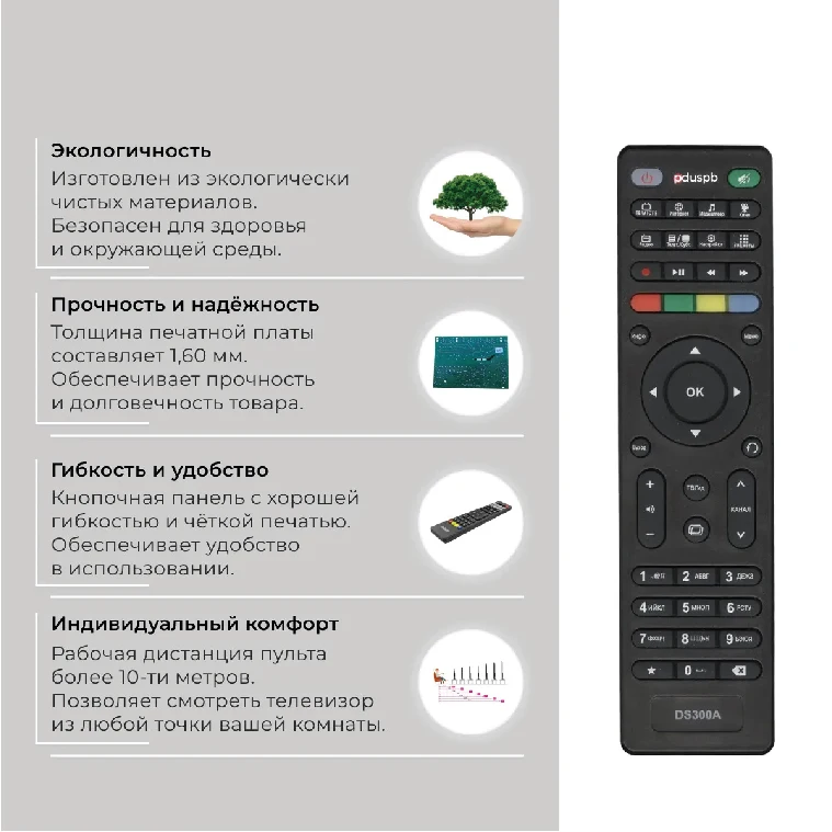 Пульт для ресиверов МТС AVIT S2-39004900, Huawei DN300 DS300A DC300A, DUNE TV 251-S MTS Lite, Castpal DS-701