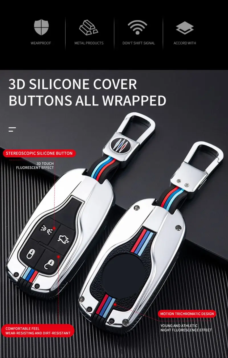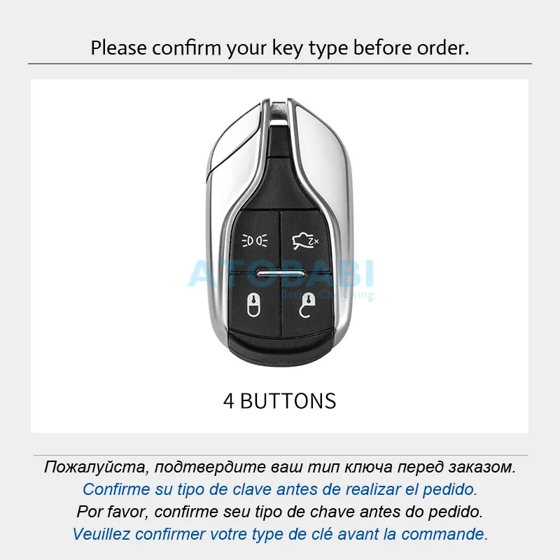 Чехол для автомобильного ключа из цинкового сплава ATOBABI с 4 кнопками и умным пультом дистанционного управления, защитный чехол для Maserati Levante GT Quattroporte Ghibli 2017 2018, автомобильные аксессуарыХарактеристики и характеристики:1. Бренд: ATOBABI2. Материал: цинковый сплав и силикон3. Кнопки: 44. Отличное соответствие размеру ключа и точному положению кнопки.5. Защитите ваши автомобильные ключи от повреждений и царапин.6. Чехол для ключей имеет светящийся эффект.7. Хорошее прикосновение и простота установки.Совместимость с моделями:Подходит для Maserati Levante GT Quattroporte Ghibli 2017 2018(Примечание: Совместимость только для справки, пожалуйста, сравните изображение с ключом автомобиля перед покупкой.)Посылка включает:Чехол для автомобильного ключа-1 шт.1 х кольцо для ключей(Брелоки для автомобильных ключей в комплект не входят.)