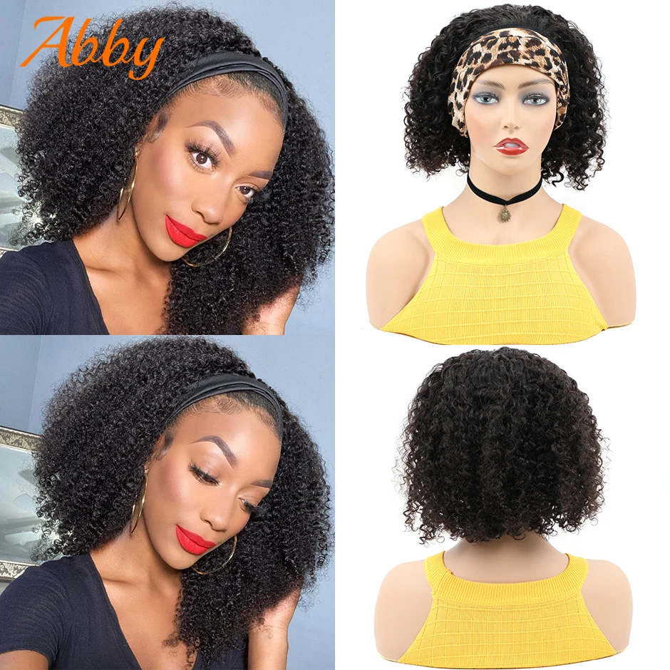 Эбби кудрявые парики боб монгольские кудрявые головные уборы парик из человеческих волос плотность 180% кудрявый шарф безклеевые короткие парики боб для черных женщин
