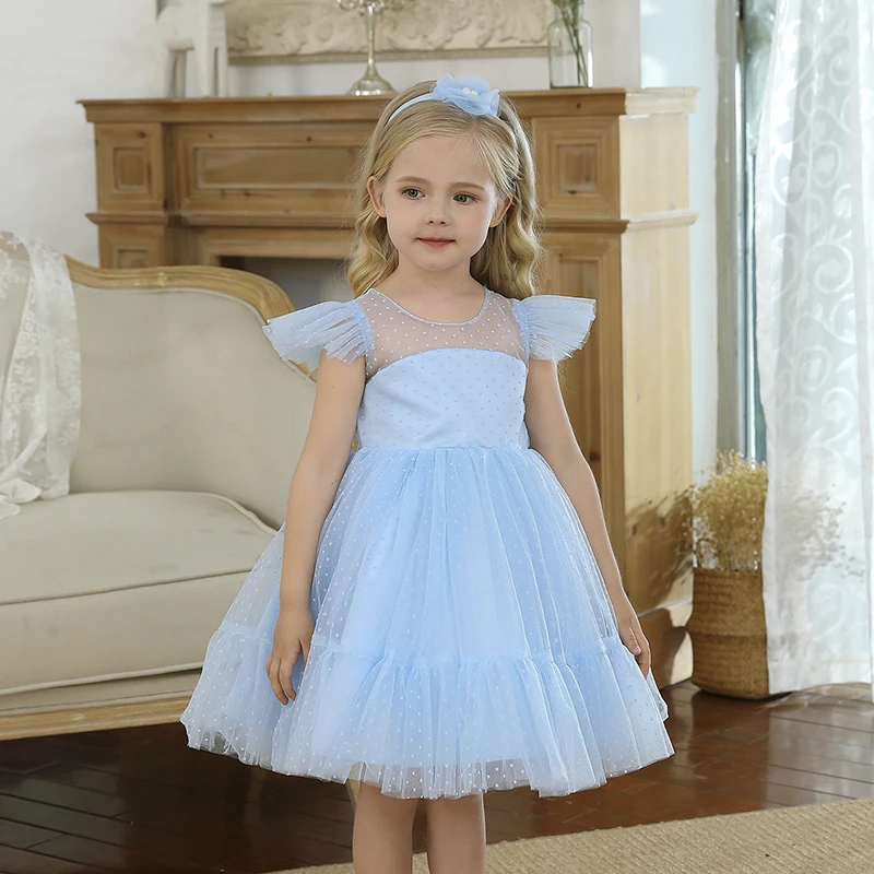Платье-пачка для девочек, для свадьбы, выпускного вечера, из тюля, в горошек