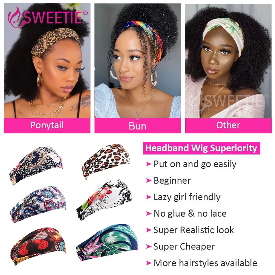 24-дюймовые афро кудрявые головные парики Sweetie, парик из 150% человеческих волос, свободная головная повязка для черных женщин, афро кудрявые парики без повреждений из человеческих волос