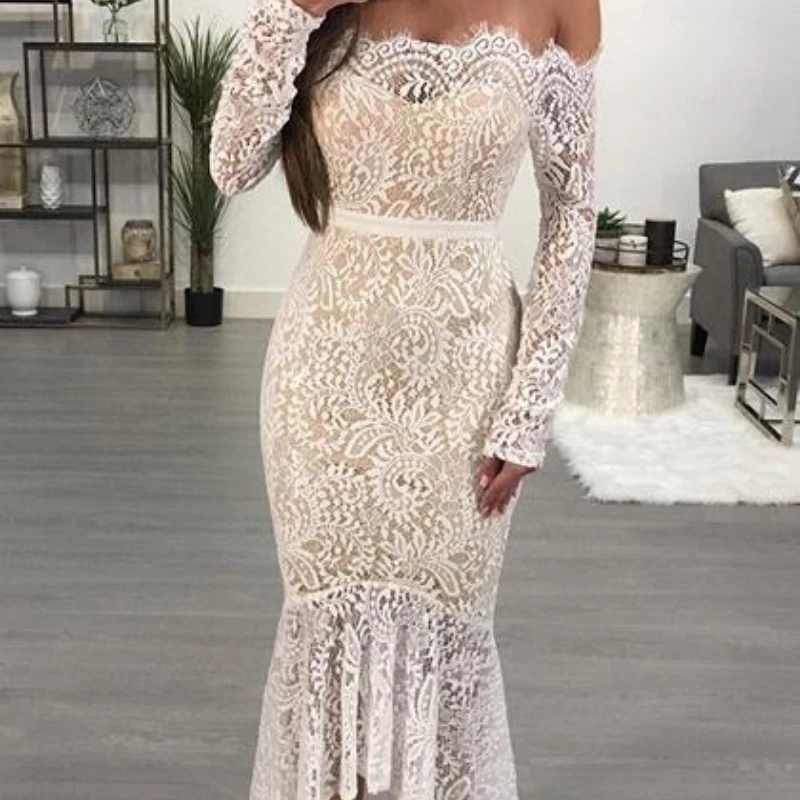 Женское облегающее платье с вырезом-лодочкой, Элегантное Белое Облегающее Платье с вышивкой и длинным рукавом для вечеринки невесты Smaid