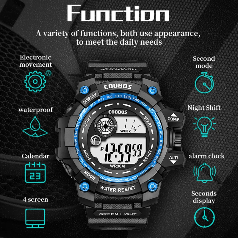 Водонепроницаемые мужские цифровые часы COOBOS, Брендовые спортивны...