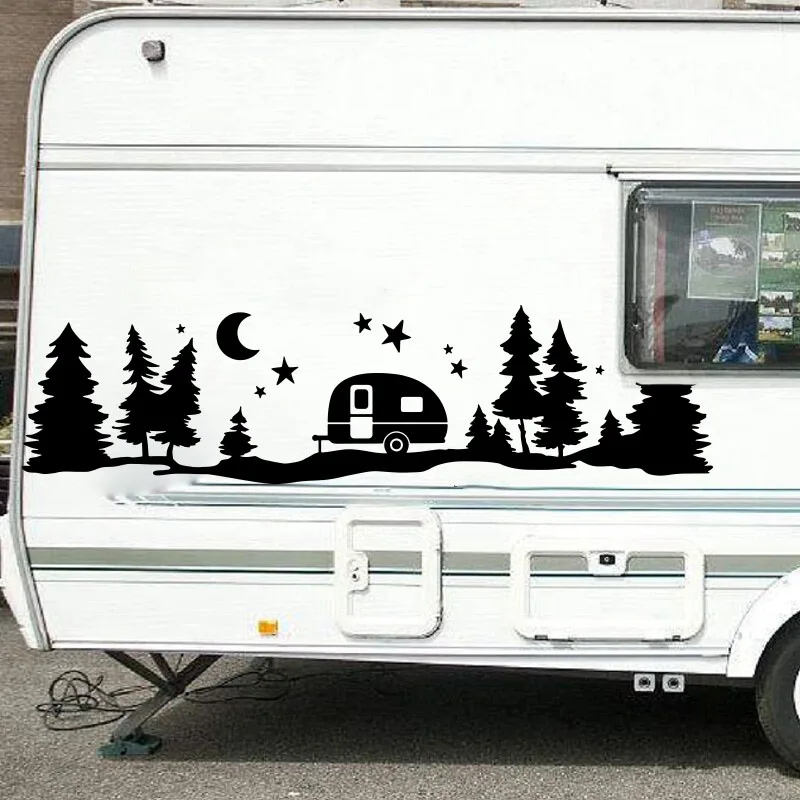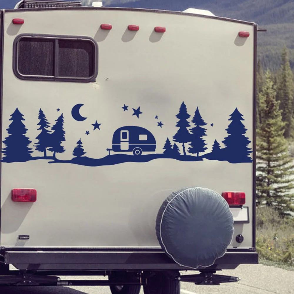 Кемпинг Rv Звездный лес горный автомобиль 4x4 внедорожник Наклейка на стену путешествия Кемпер Звезда Луна Дерево автодом SUV наклейка винил